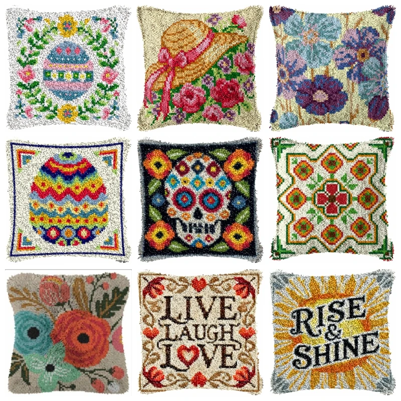 New Classic Datura Flower Latch Hook Set Embroidery Latch Hook Kit Butterfly Latch Hook Pillow Button Pad Package Handmade DIY