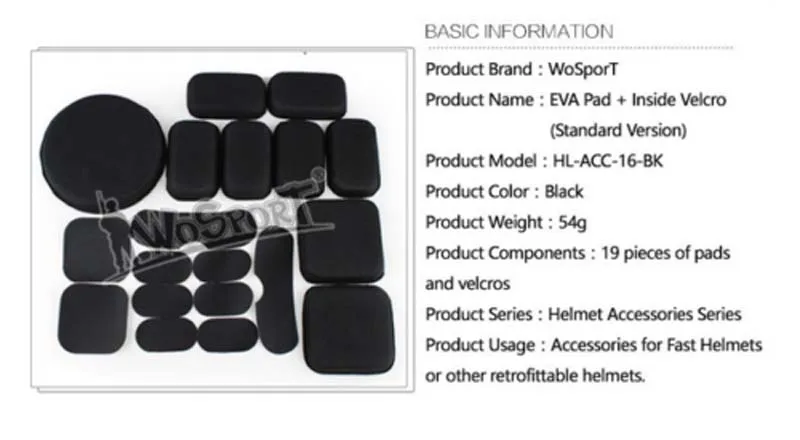 Nuevo juego de protectores de almohadillas EVA de repuesto para casco rápido táctico versión estándar Airsoft 19 Uds