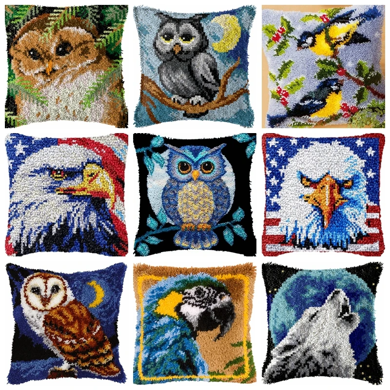 Nuevo Kit de gancho de pestillo de la serie de búho águila gato pájaro, cojín, almohada DIY, paquete de botón de costura, cojín, gancho de pestillo bordado