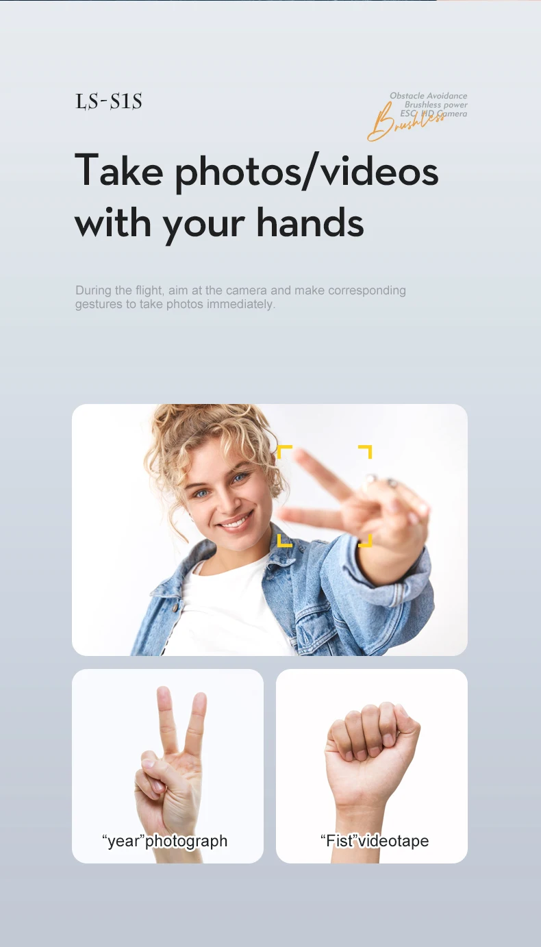 6.Fotografía de gestos manuales, posicionamiento de flujo óptico, motor sin escobillas, resistencia ultralarga, conjunto de cabezal para evitar obstáculos, que puede detenerse al encontrar obstáculos sin chocar con ellos.