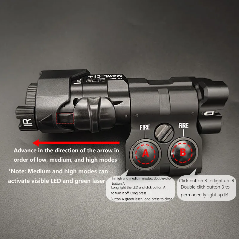 Nuevo MAWL-C1 láser táctico de nailon mejorado, láser verde Visible, LED blanco, arma de caza, luz de explorador, luz IR compatible con riel de 20mm