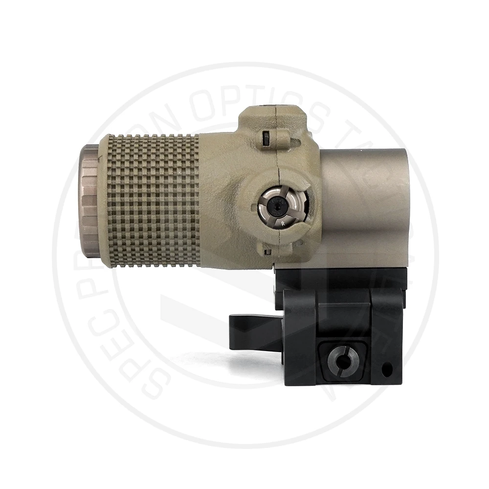 G33 scope is 3X magnifier,side foldable. details/gauge/function exactly same as original, super clear lens and imaging,much bigger viewing area than the old version G33 replica.