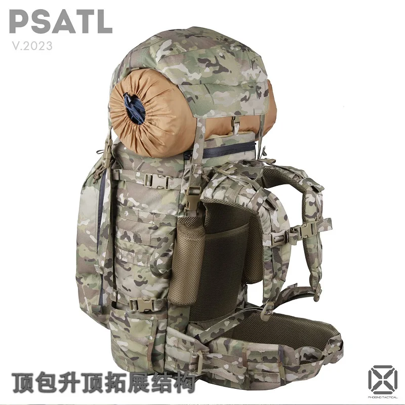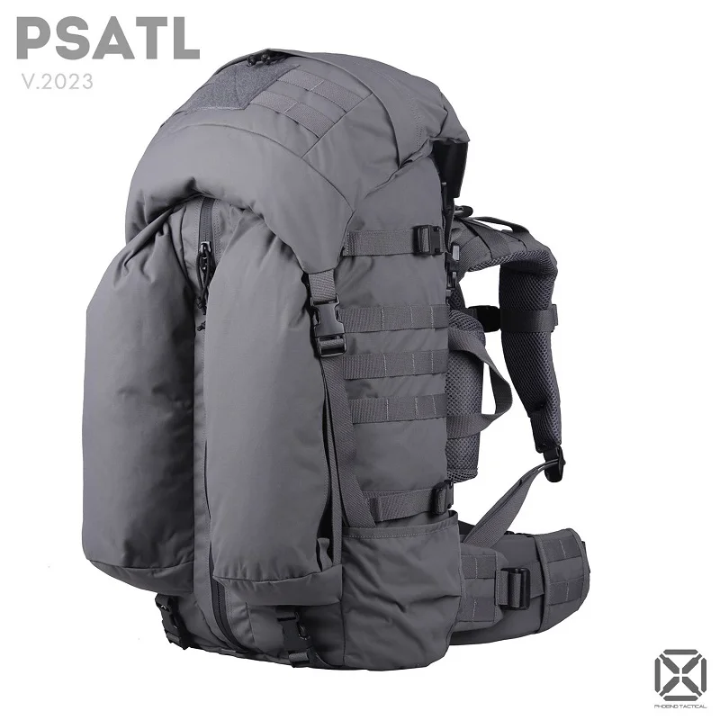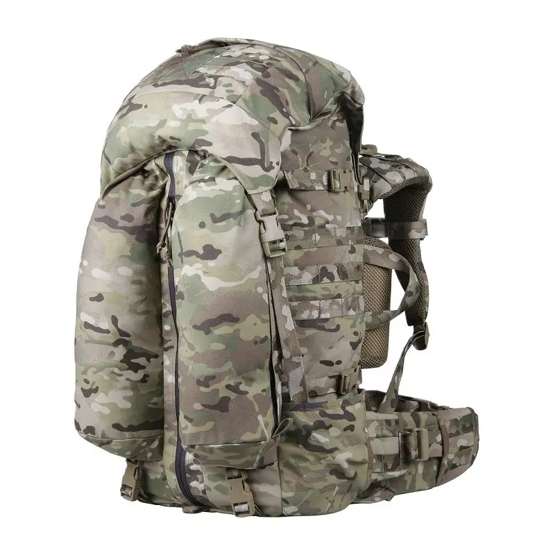 Todo el paquete tiene una capacidad de 60 litros.El paquete superior independiente se puede levantar para aumentar la capacidad, y se pueden atar más artículos con correas horizontales en la parte inferior.