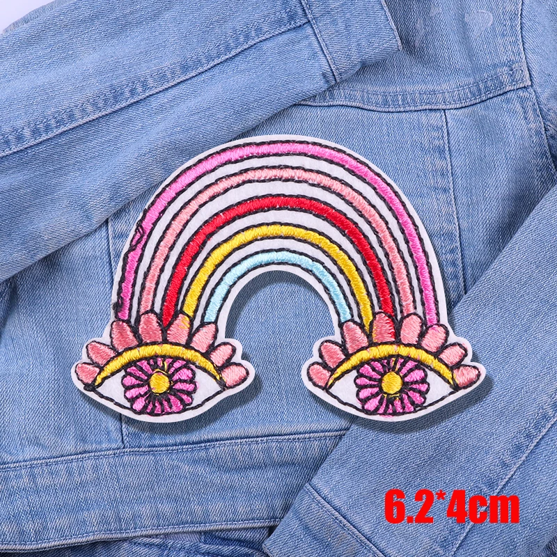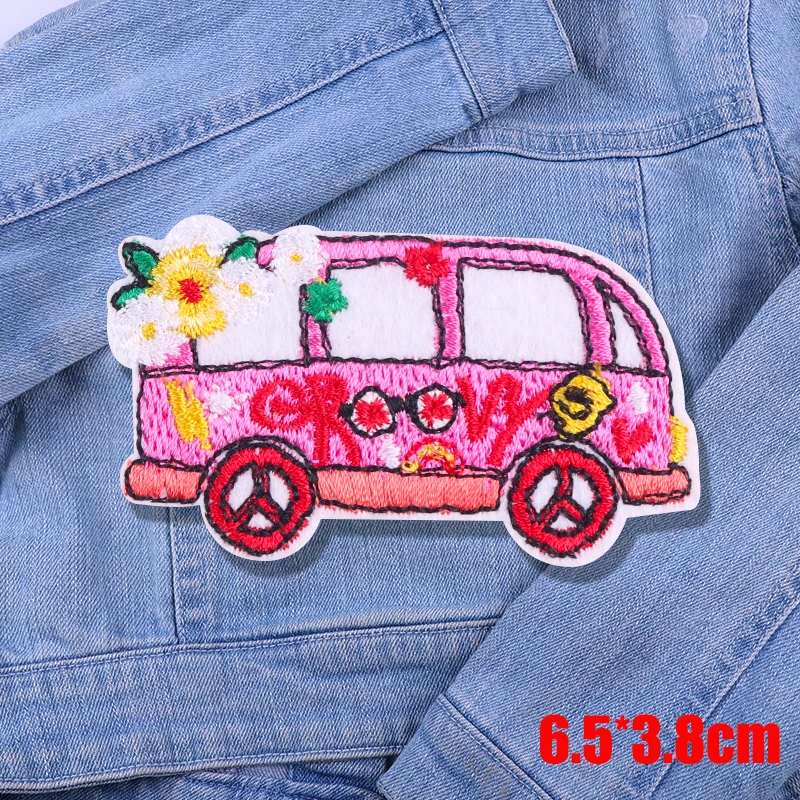 Nuevo parche bordado de zapatos de leopardo rosa, parche de autobús de dibujos animados de arcoíris/mariposa, parches para planchar para ropa, sombreros, mochila, coser DIY