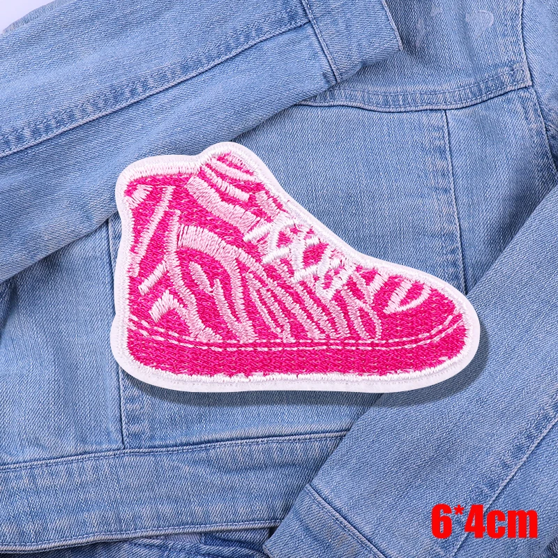 Nuevo parche bordado de zapatos de leopardo rosa, parche de autobús de arcoíris/mariposa de dibujos animados, parches de hierro para ropa, sombreros, mochila, costura DIY