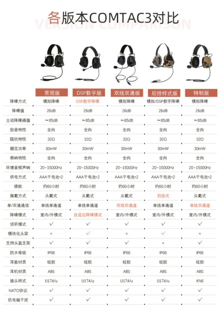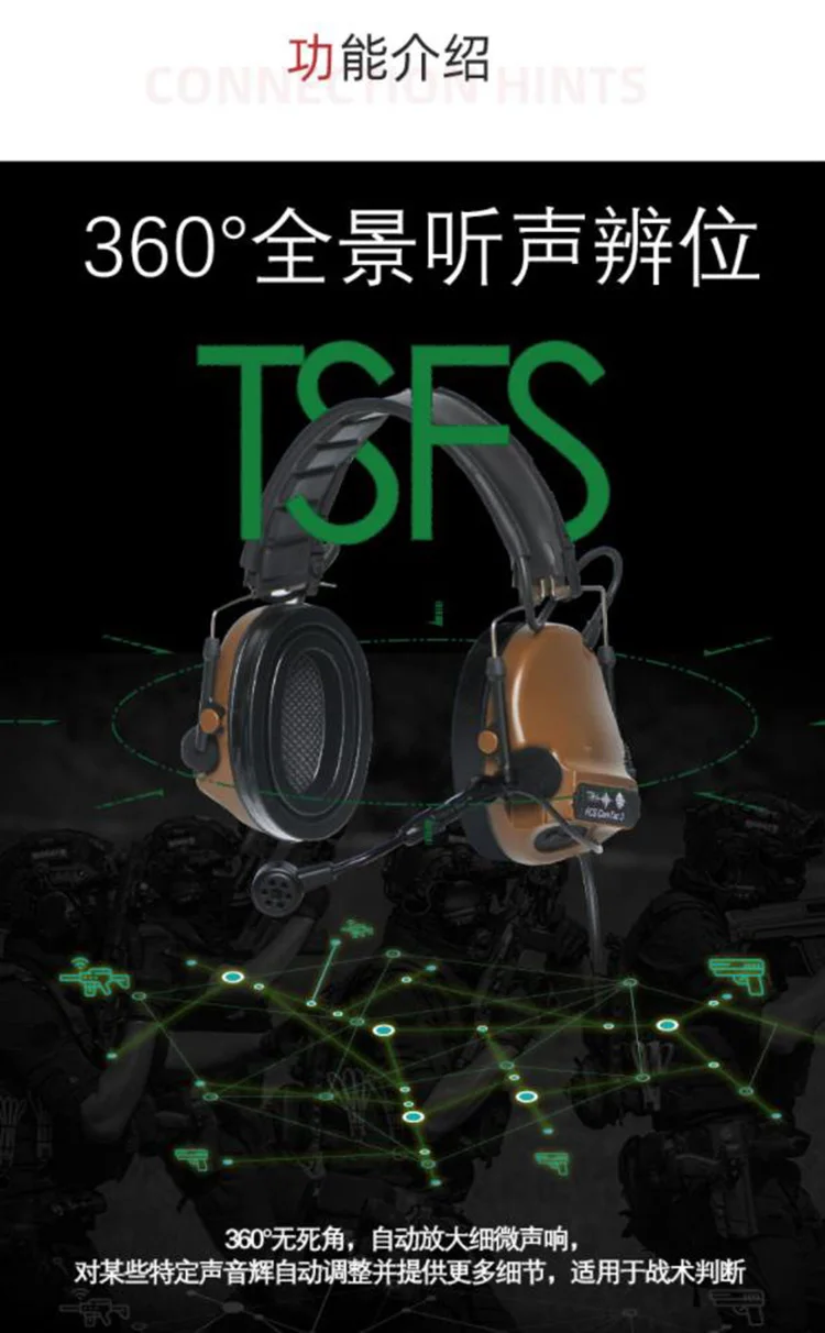 El nuevo DSP COMTAC3 adopta el chip digital DSP personalizado táctico FCS para realizar un nuevo método de reducción de ruido digital. En comparación con la reducción de ruido analógico de la generación anterior COMTAC3, el nuevo esquema de reducción de ruido digital puede reducir de forma inteligente el ruido de una banda de frecuencia específica, como solo el ruido de alta frecuencia, Y conserva el sonido de otras bandas de frecuencia para lograr una reducción dinámica del ruido.