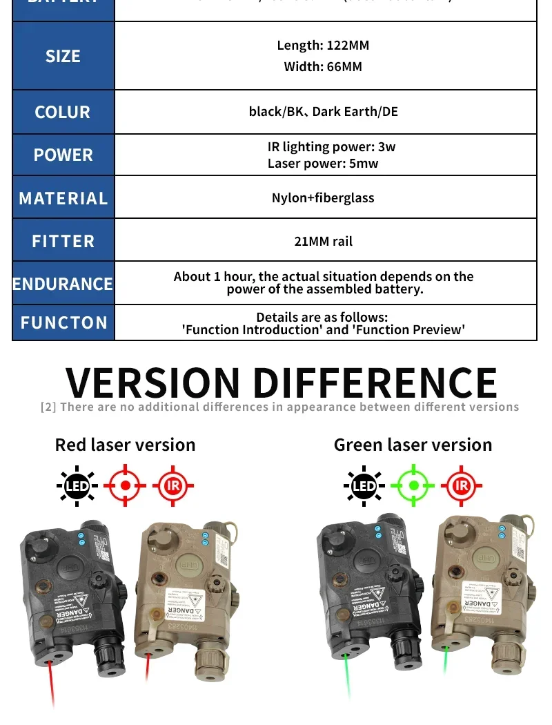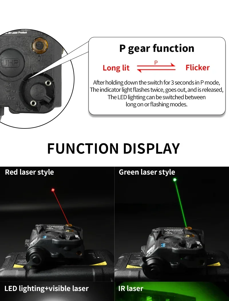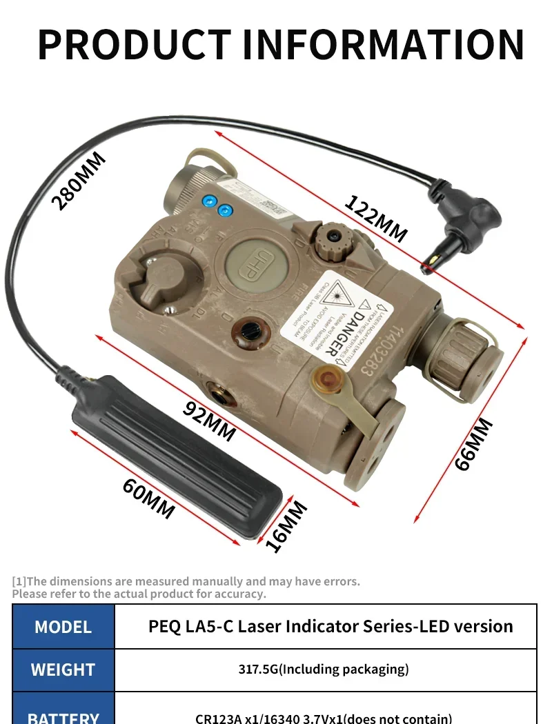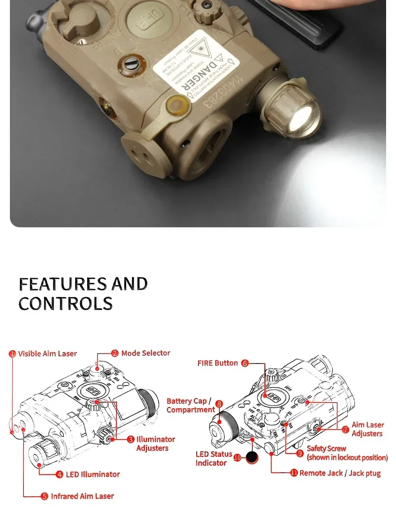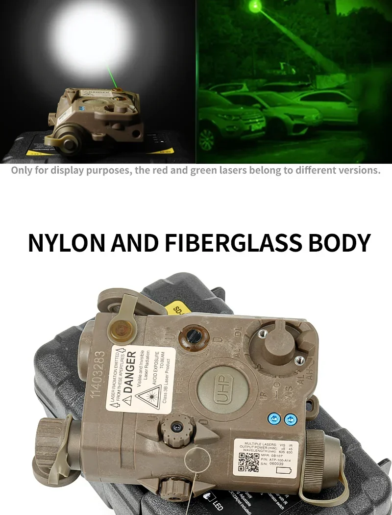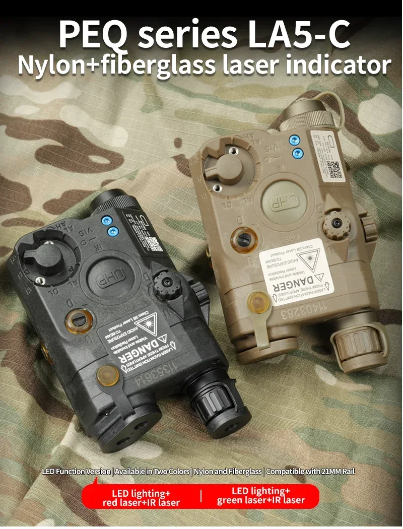 Nuevo PEQ-15/LA5-C láser táctico de punto verde/rojo IR luz LED blanca adecuada para caza al aire libre luz de explorador para riel de 21mm