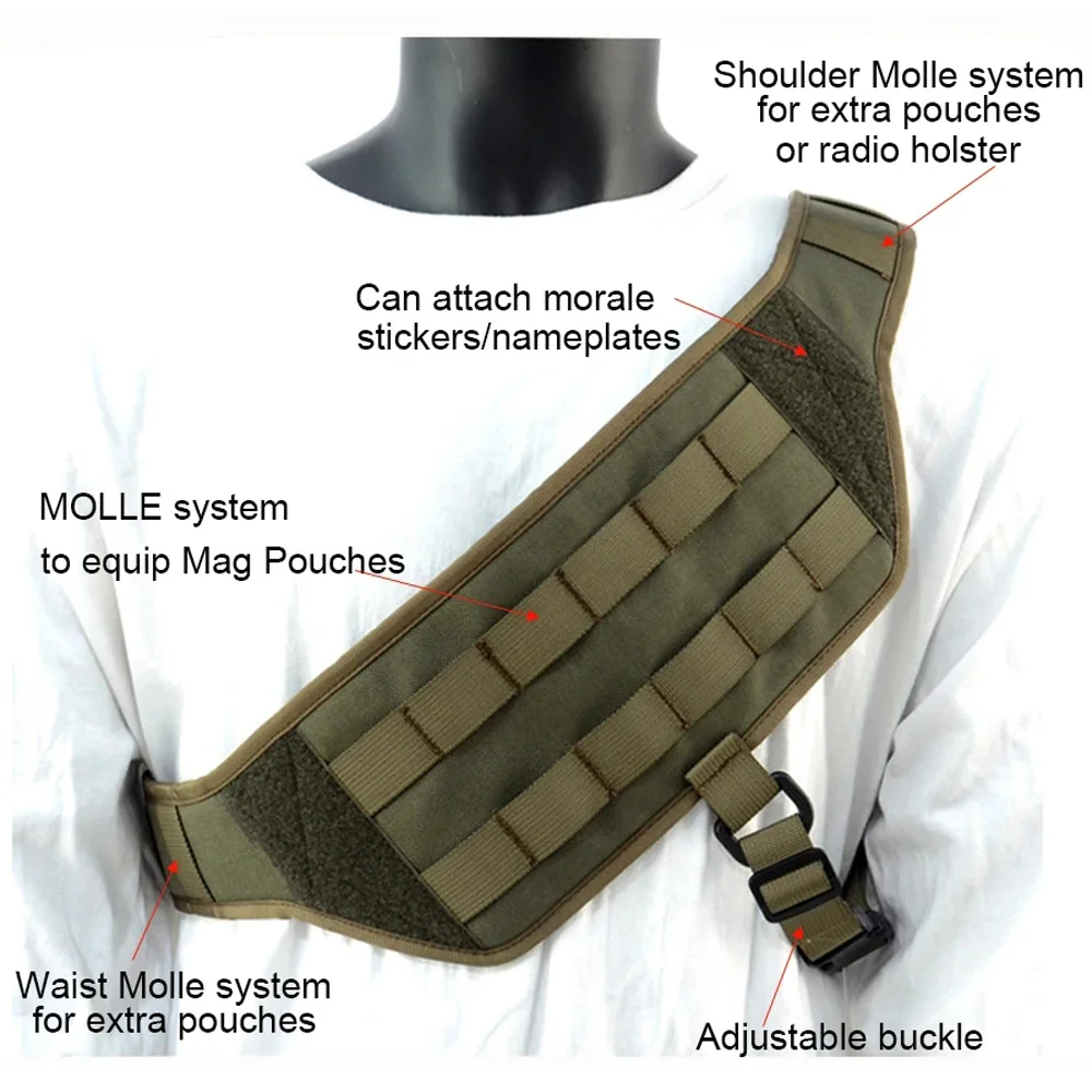 Nuevo táctico Molle Chest Rig plataforma MOLLE Bandoleer plataforma correa de pecho correa de hombro ajustable Nylon Gear chaleco