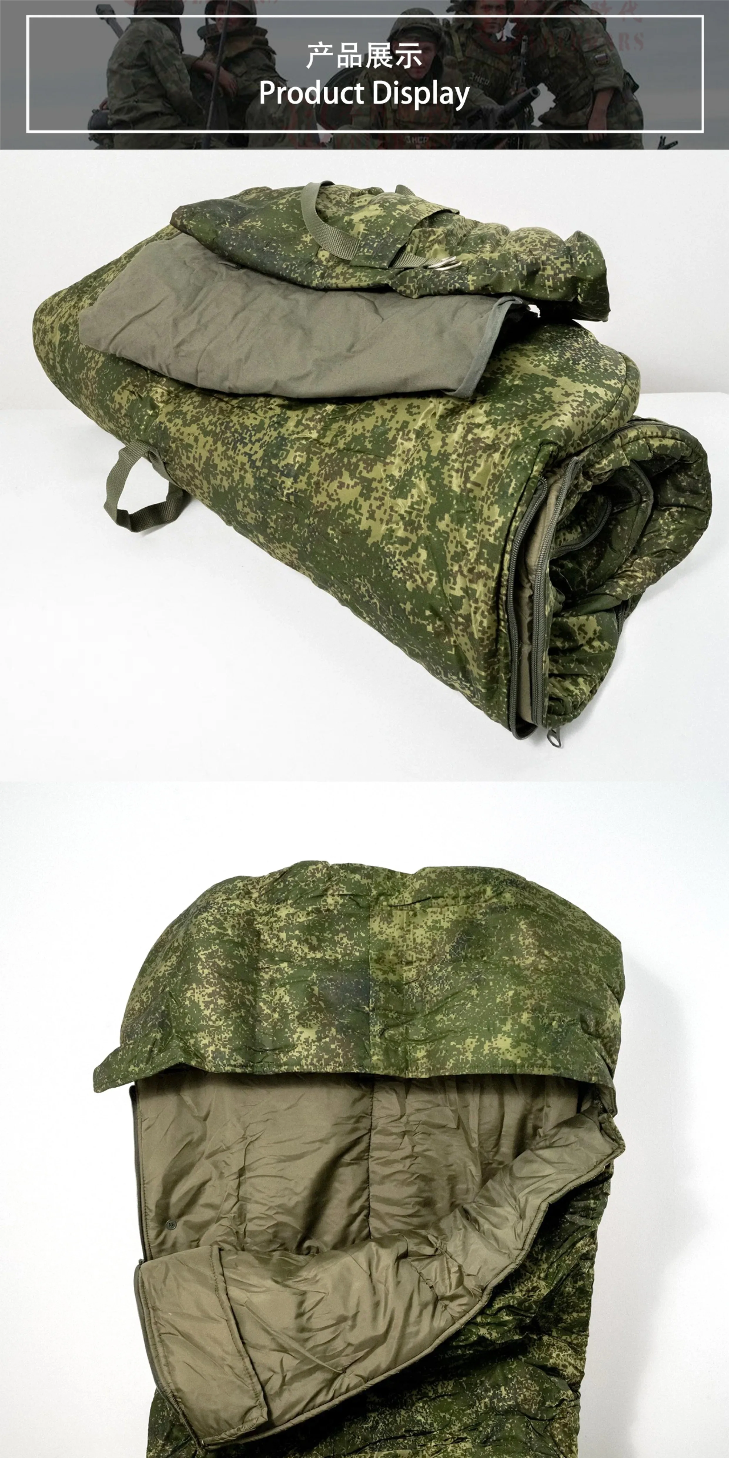 Nuevo saco de dormir táctico resistente al frío para exteriores, camuflaje digital verde, relleno de algodón y nailon