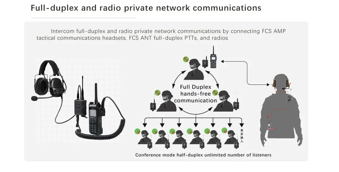 Nuevo sistema Raido FullDuplex táctico 2024 FCS ANT con accesorios de comunicación de auriculares militares PTT AMP