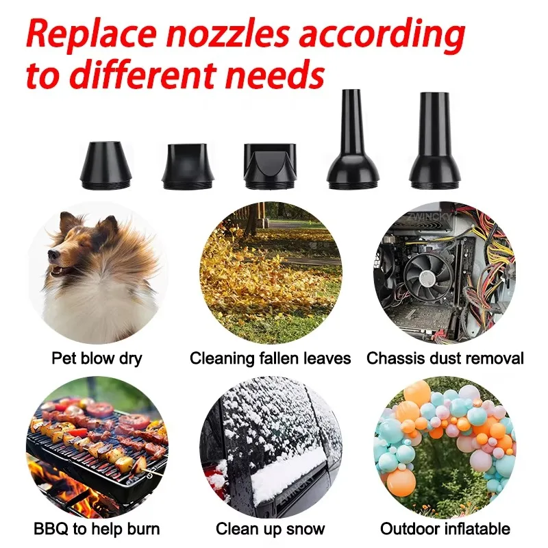 【Flujo de aire personalizable de alta velocidad】: Con la capacidad de alcanzar una velocidad asombrosa de 30 metros por segundo, este mini soplador con ventilador de chorro se puede ajustar sin esfuerzo para adaptarse a su tarea.El control deslizante fácil de usar permite un ajuste preciso del flujo de aire, lo que lo hace ideal para una variedad de actividades, desde secar el cabello hasta eliminar el polvo de los componentes electrónicos delicados.