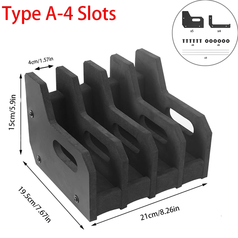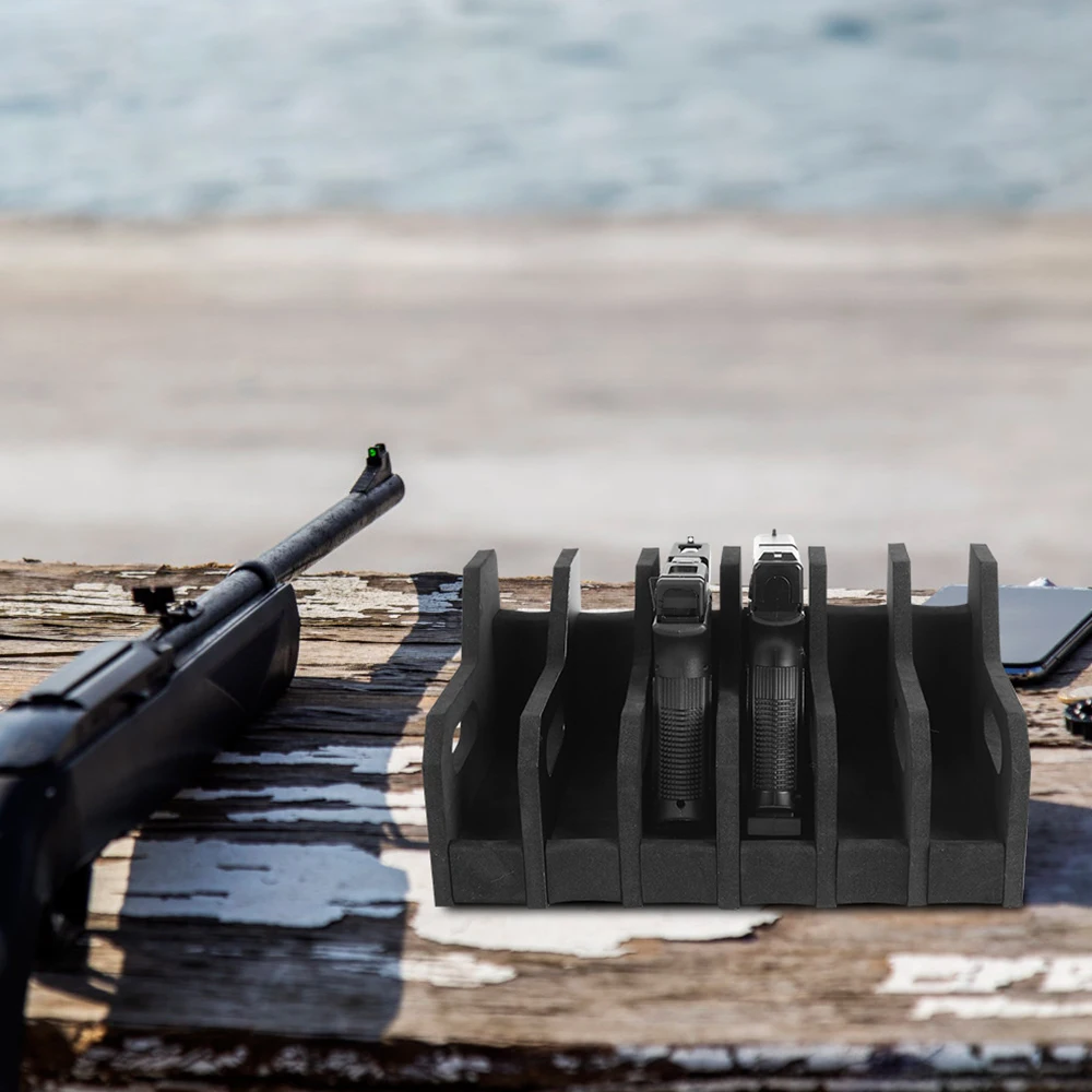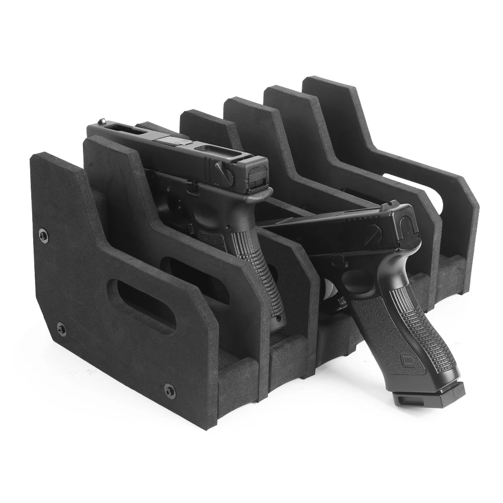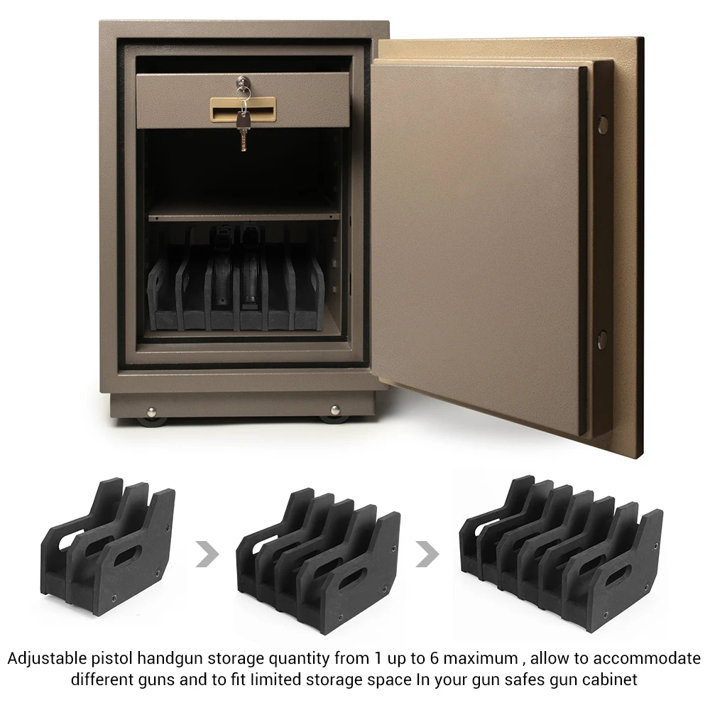 4. 【Tamaño versátil】 Este estante de almacenamiento de pistolas de 4/6 cuenta con ranuras de 1,5" que se adaptan a la mayoría de pistolas y revólveres.Es un práctico soporte para armas y un accesorio para pistola, que ofrece una solución confiable de almacenamiento de armas compatible con la mayoría de las cajas fuertes para armas.