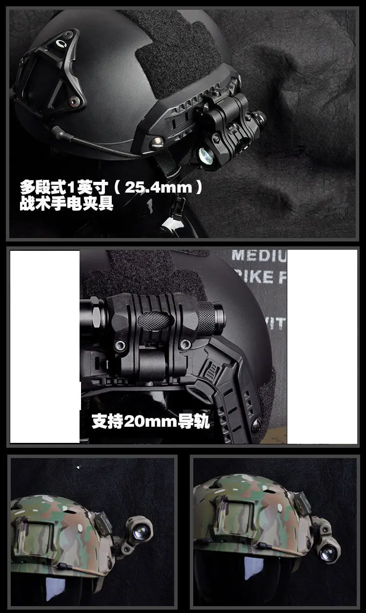 Nuevo soporte para linterna táctica desmontable rápido, Spinner de luz, Stents giratorios para casco MICH FAST