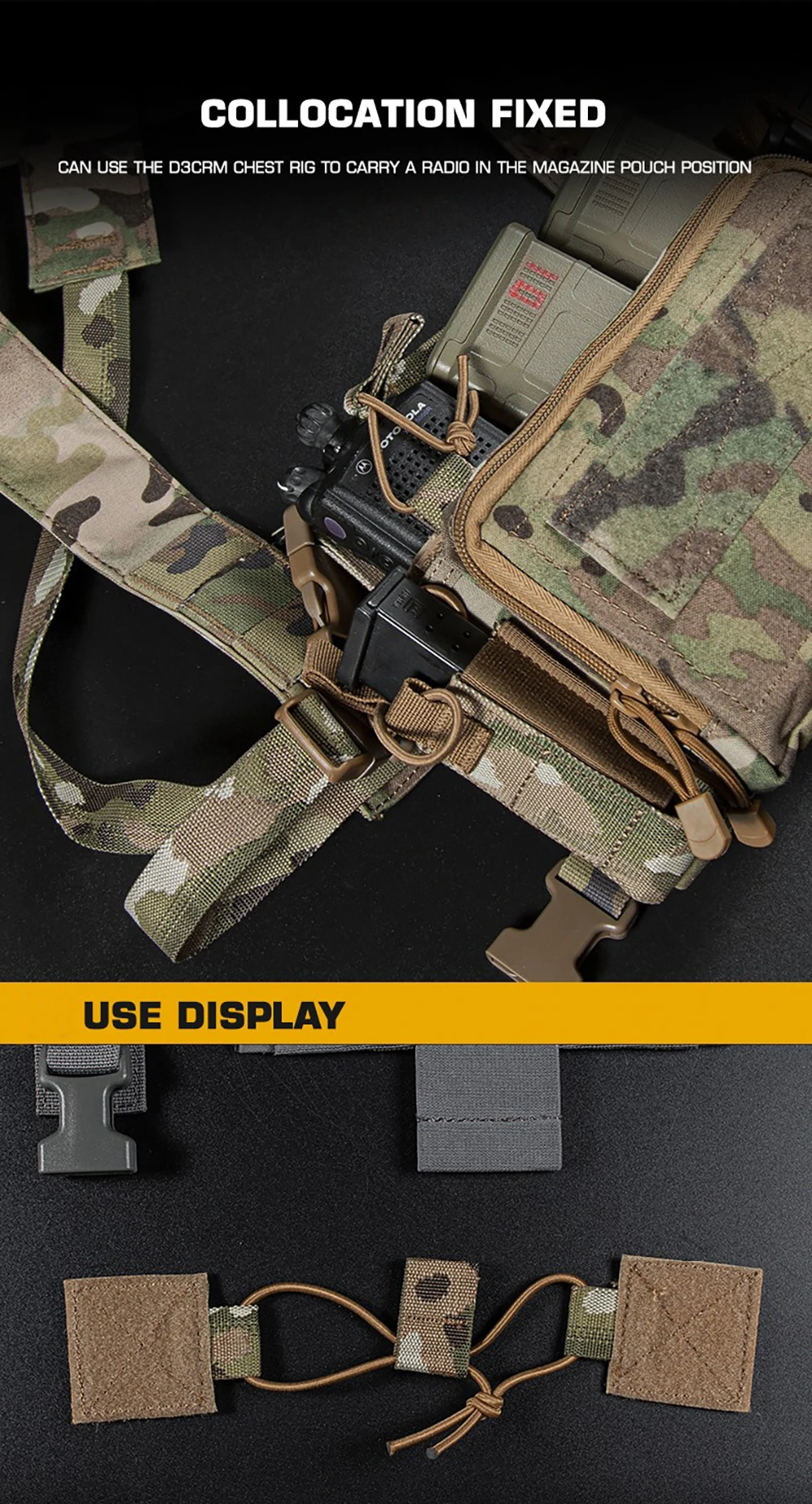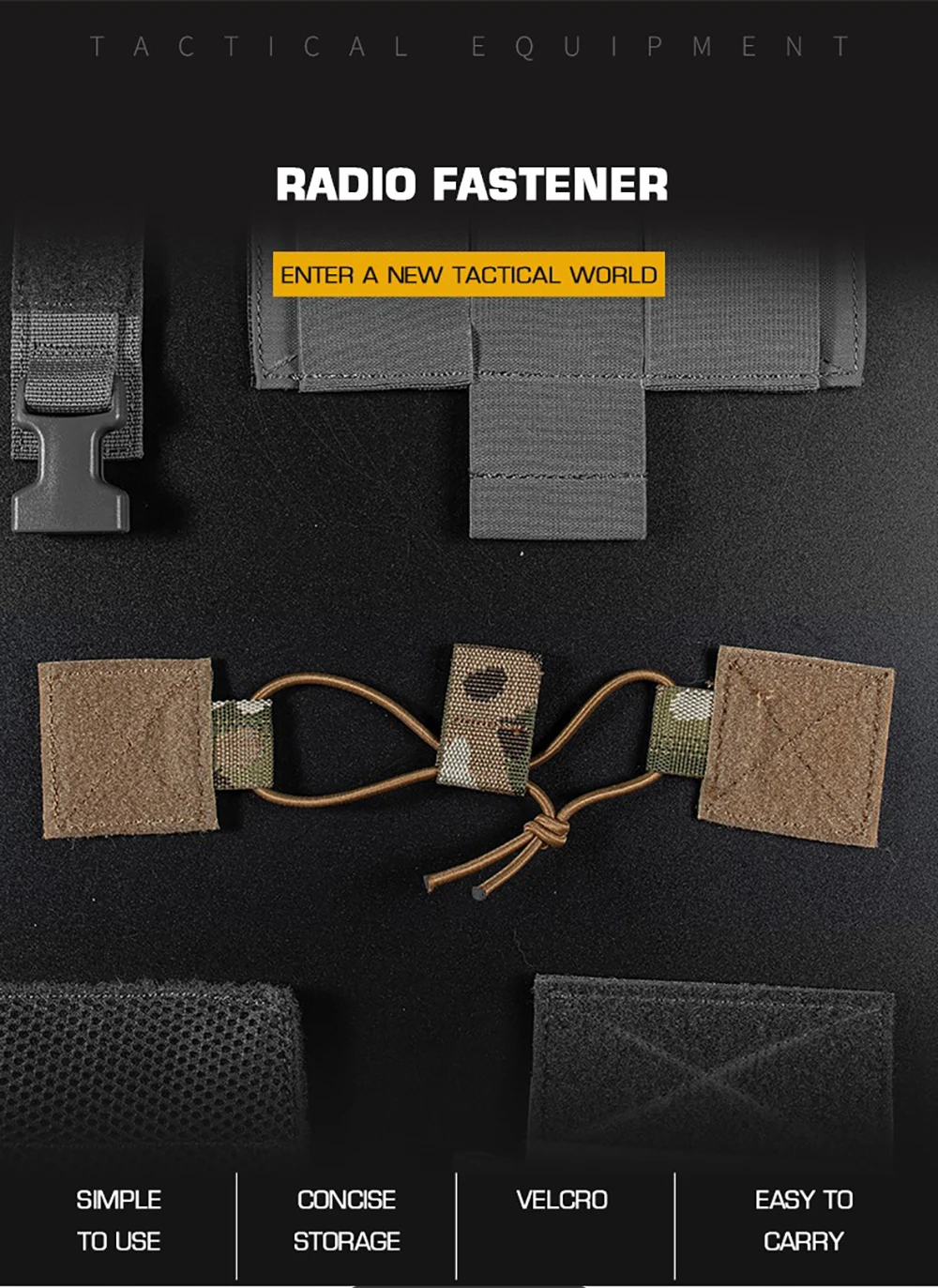 2.Cordón elástico de retención para asegurar su dispositivo táctico, como radio militar, revistas y hervidor.