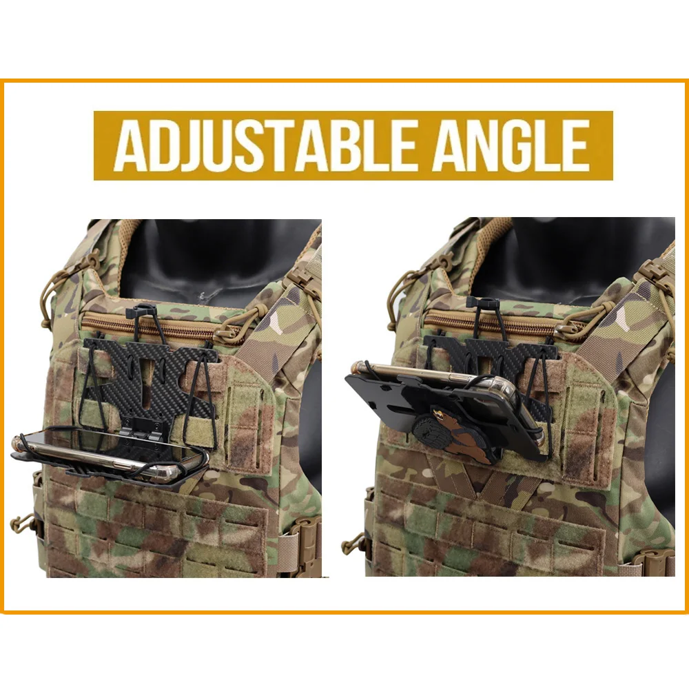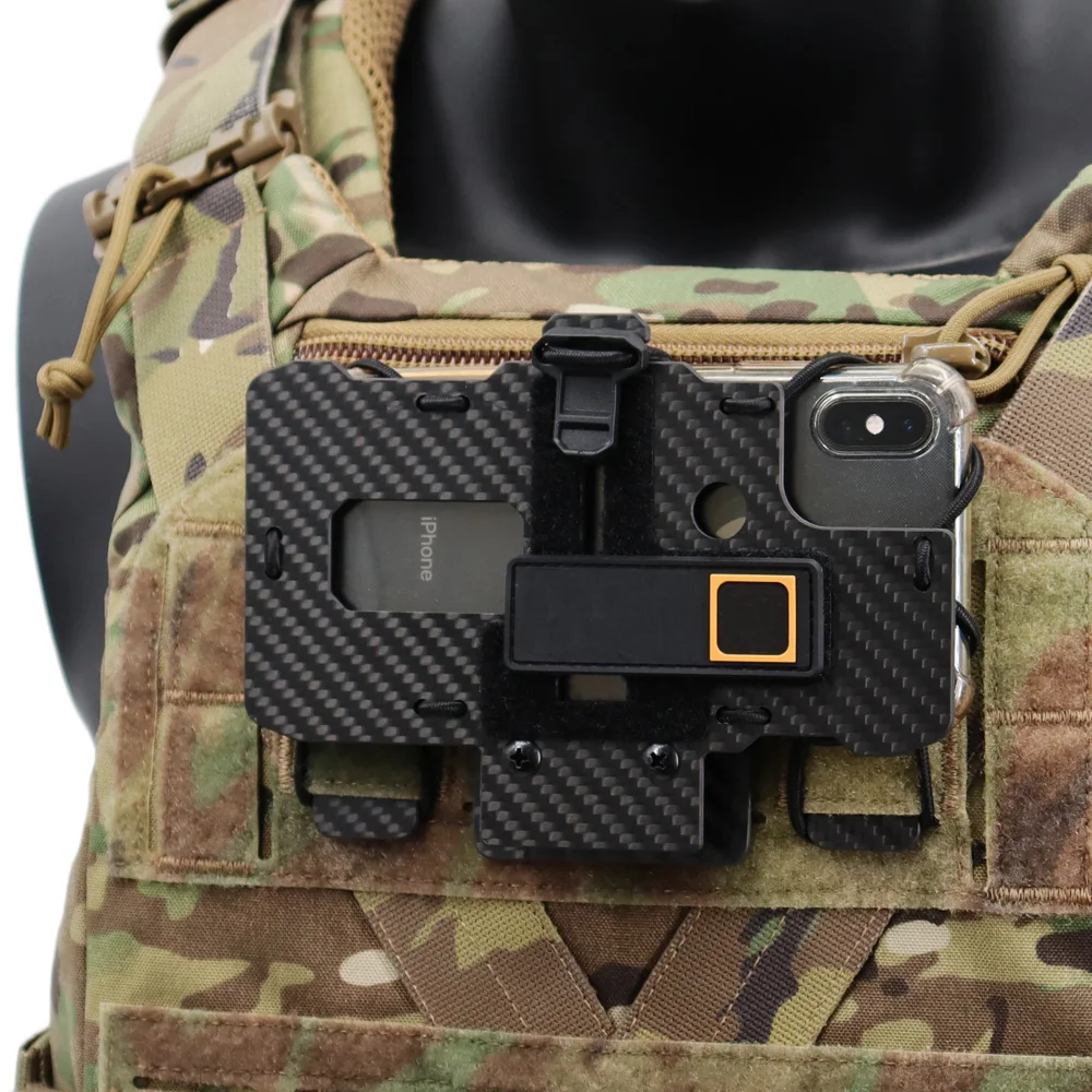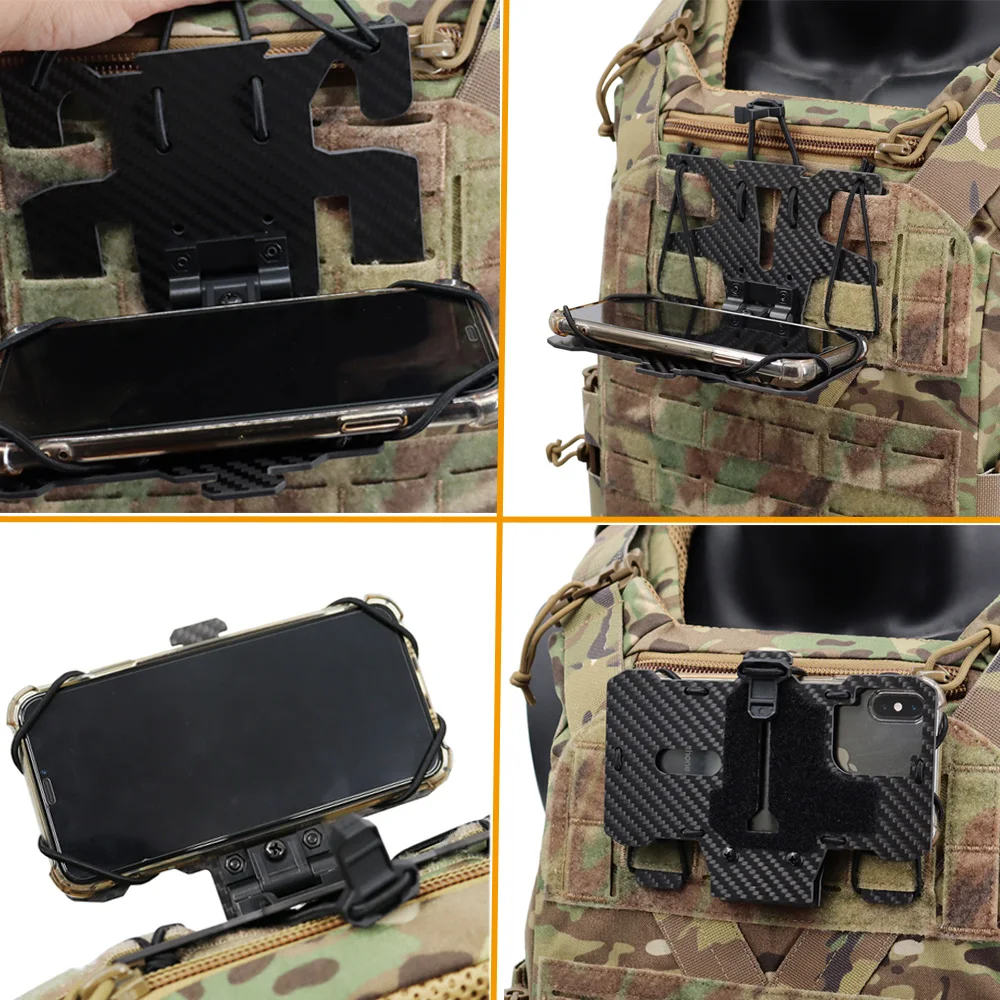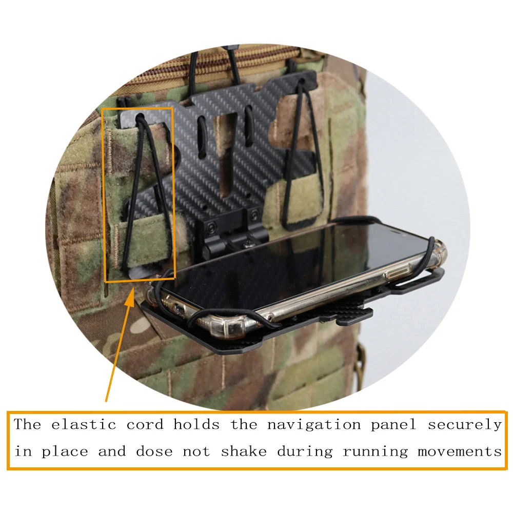 Carbon Fiber Tactical MOLLE Folding Navigation Board Hunting Airsoft Vest Mobile Phone Holder Mount For Screen Size 4.7”-6.7”