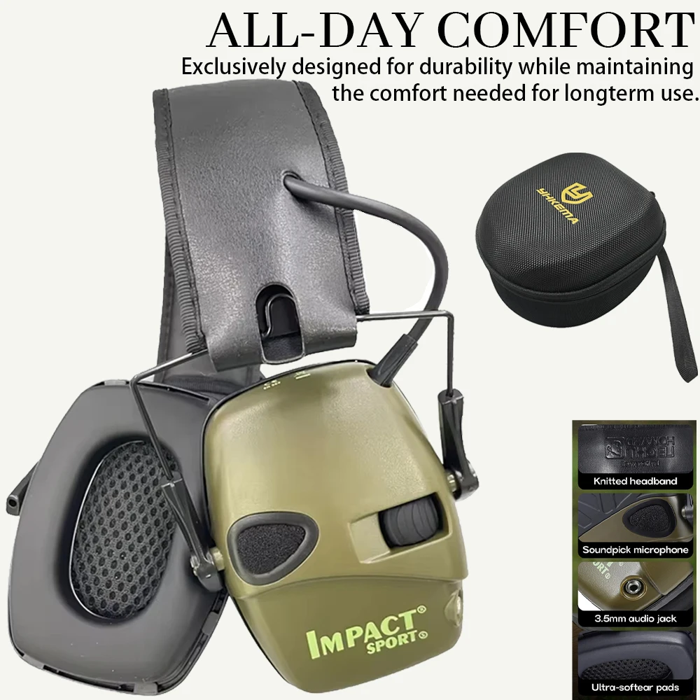 AMBIENTE AMPLIFICACIÓN DEL SONIDO: Nuestra protección auditiva para tiro está equipada con 2 micrófonos omnidireccionales y un chip avanzado, por lo que puede amplificar claramente los sonidos circundantes de bajo nivel hasta 4X.Proporciona una escucha más natural y una comunicación mejorada.Esta es la primera opción para la mayoría de los entusiastas del tiro si estás cansado de quitarte los tapones para los oídos cuando alguien te habla al alcance de las armas.