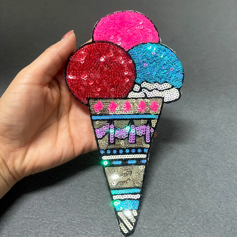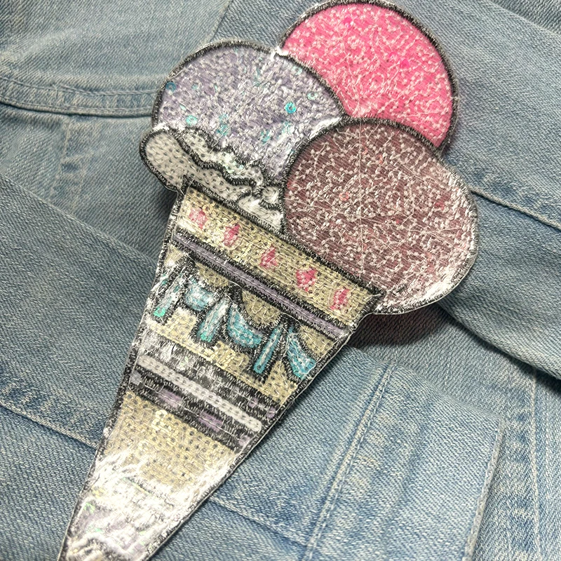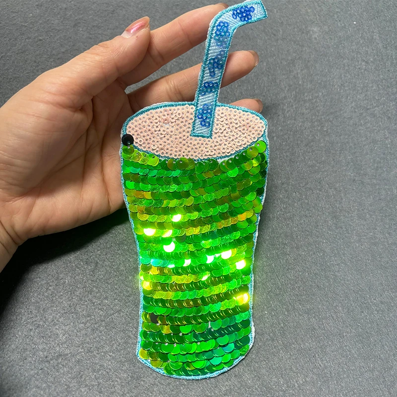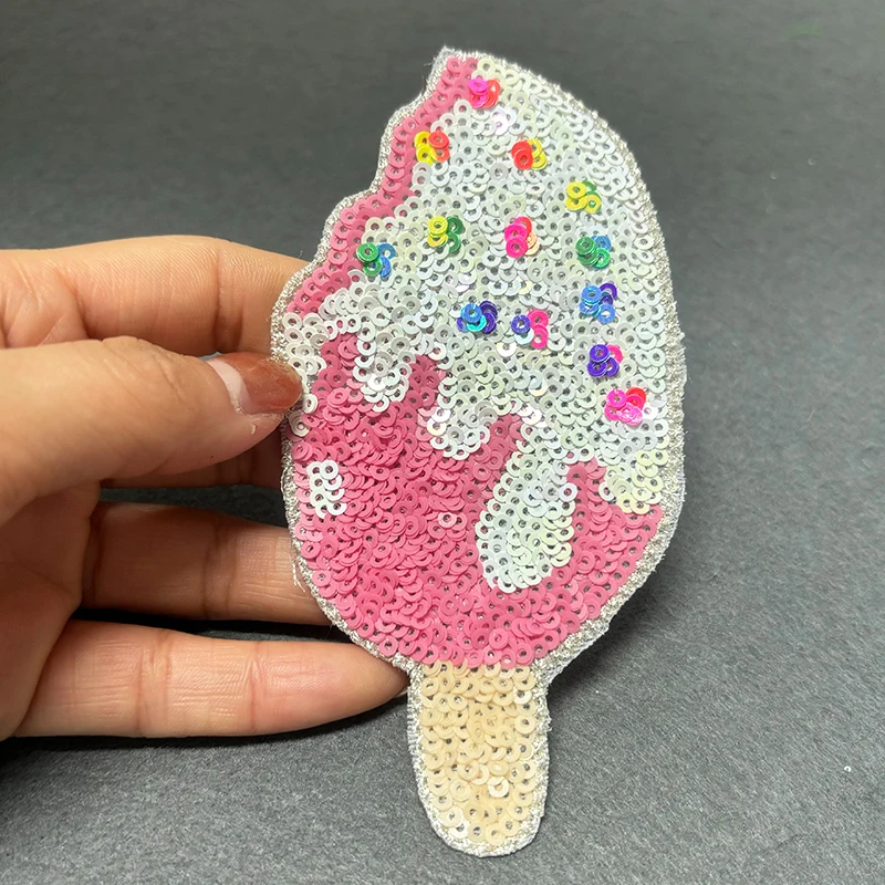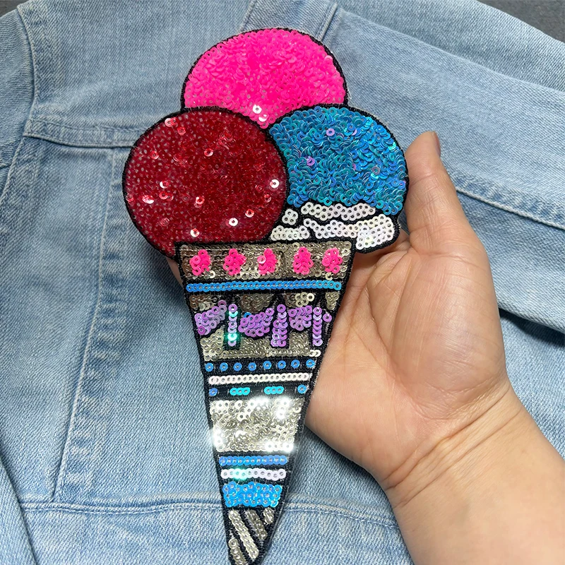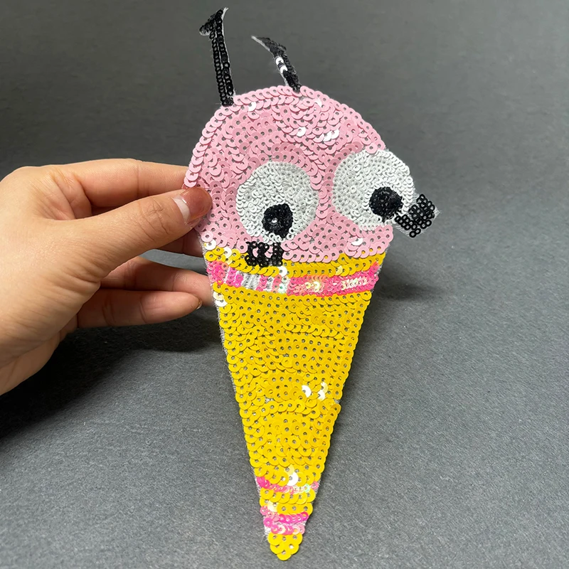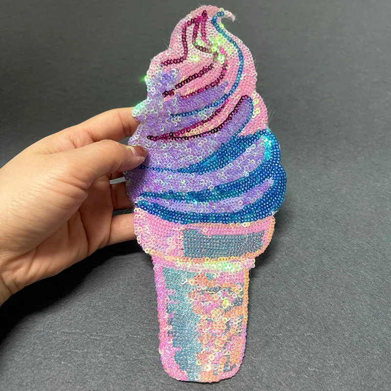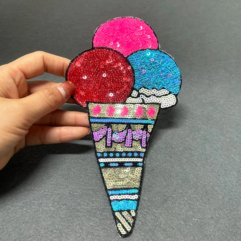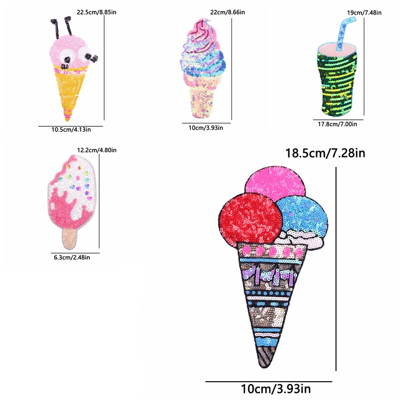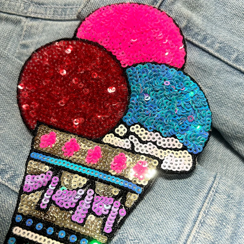 Nuevos parches bordados de lentejuelas de dibujos animados DIY lentejuelas coloridas helado bebidas parche decoración de ropa bordado pegatinas para coser