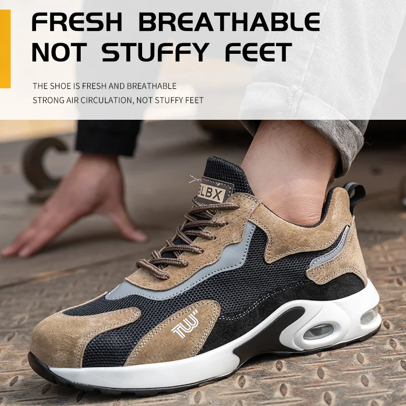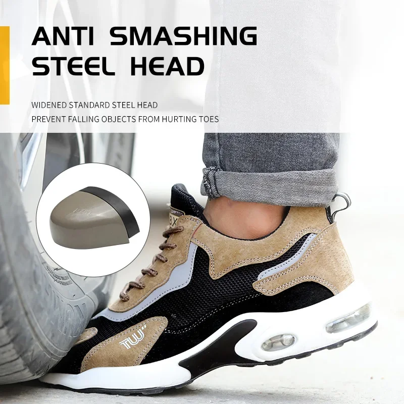 Nuevos zapatos de trabajo Staleneus 2025, puntera de acero, zapatillas de seguridad de retales para hombres, botas indestructibles con cojín de aire acogedor, calzado masculino