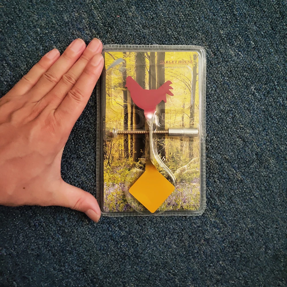 Simplemente tome una piedra y martille el objetivo fijado en la madera, luego atornille estos objetivos de acero de 3mm con un pequeño juego de Llaves hexagonales a cualquier objeto de madera, es decir. Árbol, poste de cerca, pico de madera, etc. Puedes disfrutar de horas de diversión al disparar el rifle.