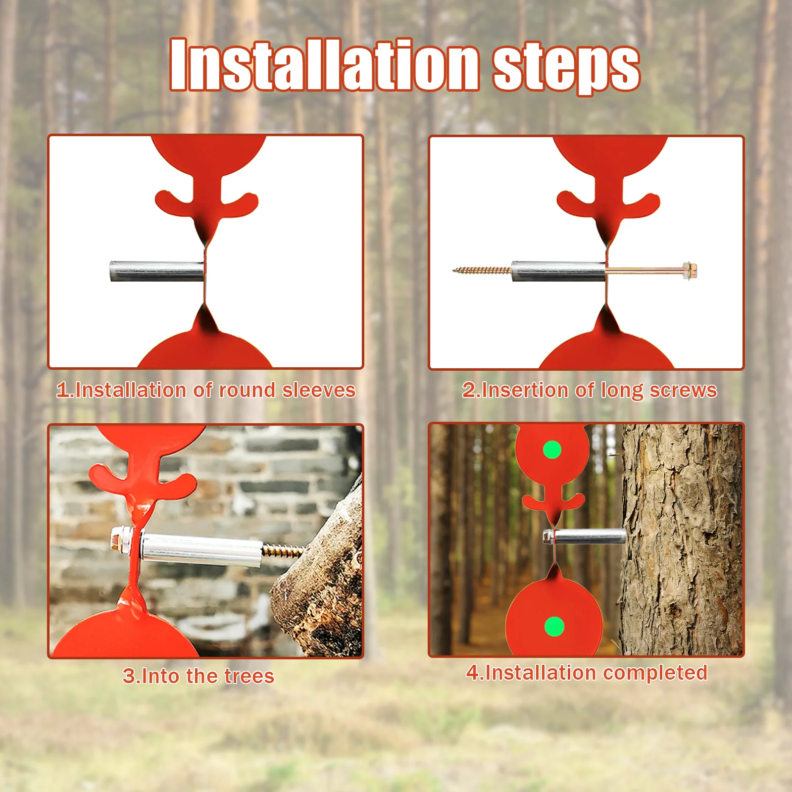 3.[FÁCIL DE INSTALAR]: Inserte el objetivo giratorio, la funda circular y el anillo de silicona en el tornillo hexagonal, luego fije el conjunto a un árbol, barandilla o madera.Gravity mantiene el objetivo vertical, perfecto para practicar con pistola de aire comprimido.