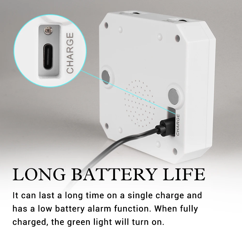 Batería de polímero incorporada y equipada con alarma de baja potencia e indicadores de carga.El indicador de carga se vuelve verde cuando la batería está llena.