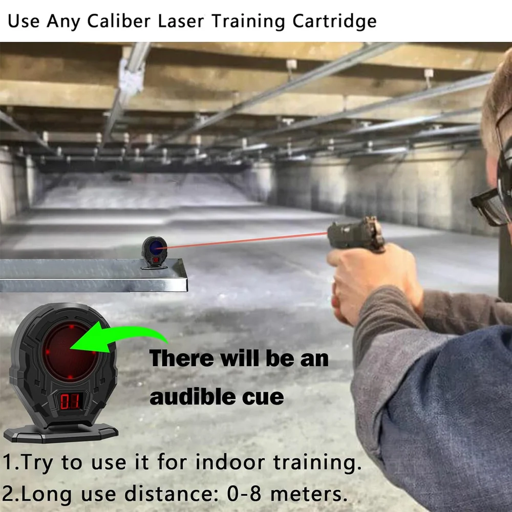 Funciona con la mayoría de los cartuchos láser de capacitación del mercado.El objetivo le proporciona un flash, un número acumulativo y una respuesta de sonido cuando su láser lo golpea.Perfecto para practicar tus habilidades fotográficas en interiores sin municiones en vivo.