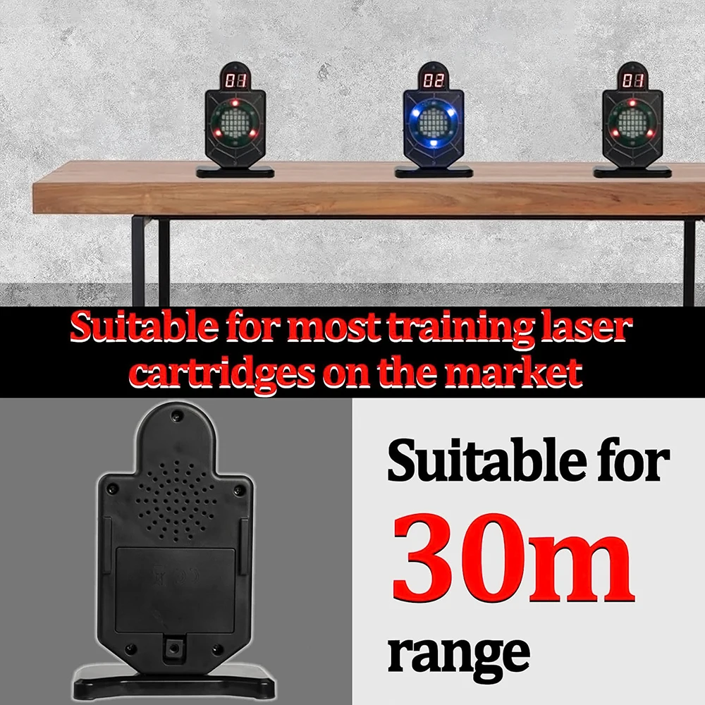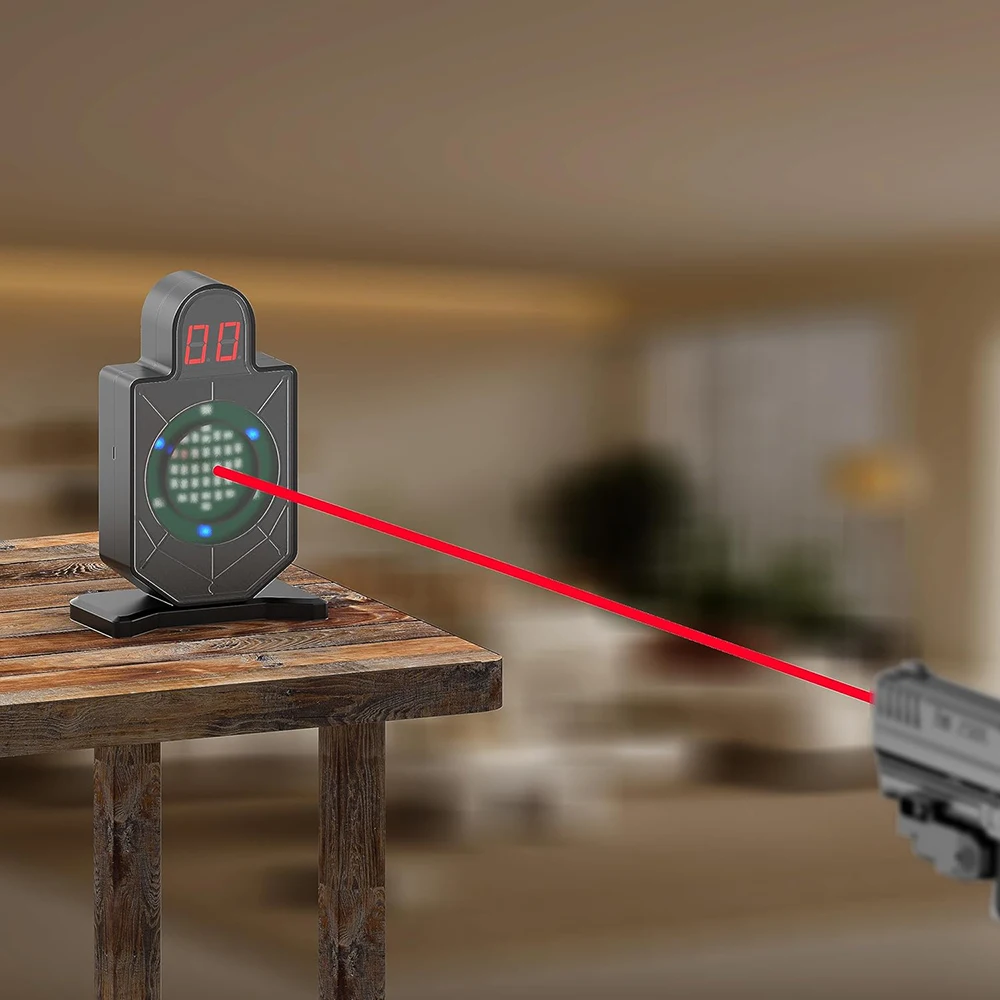 Laser trainer target with light and sound activation are great tools for dry fire training. It will give you a flash, cumulative number and sound feedback when your laser hits the target.Our laser counting target is suitable for experts or beginners, trained indoors without using live ammunition.