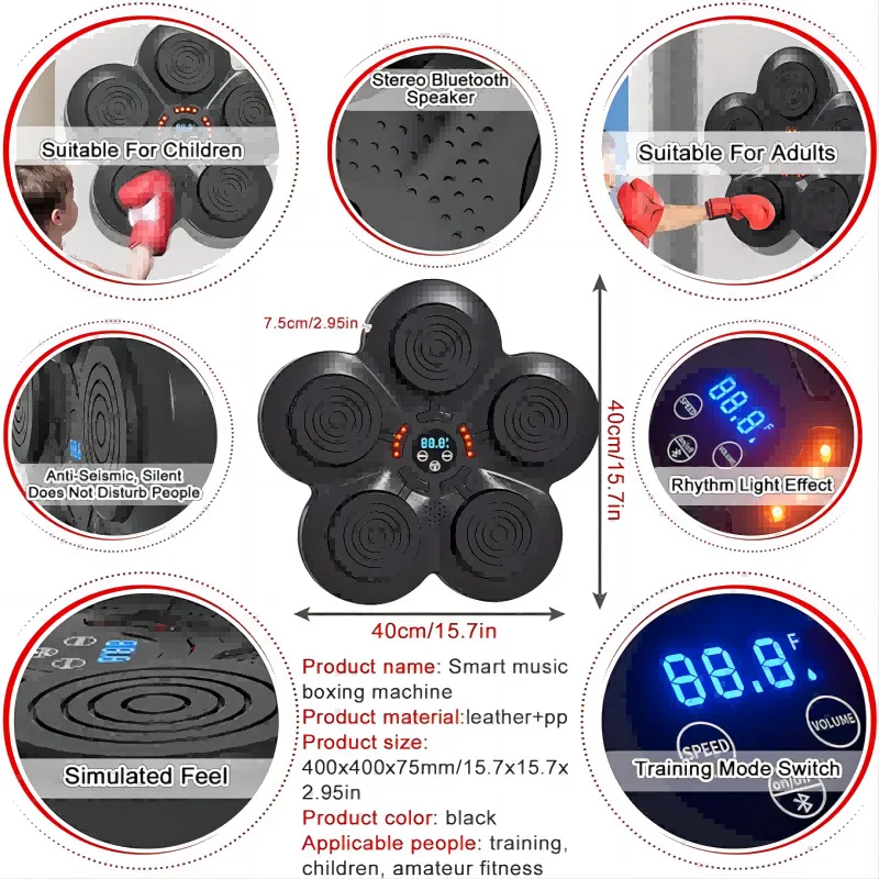 Objetivo de pared de boxeo inteligente con Bluetooth, respuesta de entrenamiento, música, objetivo de boxeo, colgante de pared, Sanda, descompresión para niños y adultos