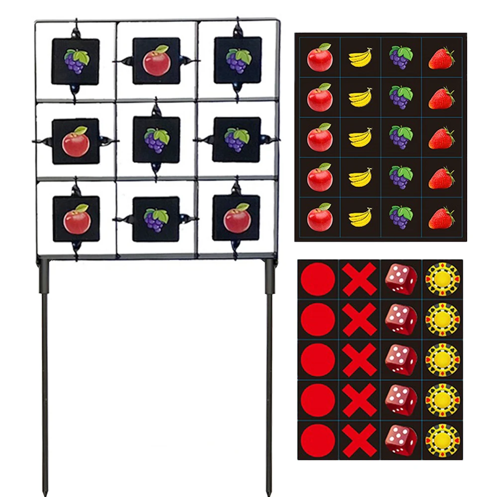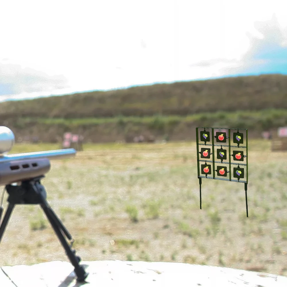 Objetivo Reactivo de Metal 360° Objetivos de reinicio automático giratorios con pegatinas de frutas para tiro con pistola Airsoft Paintball BB/Pellet