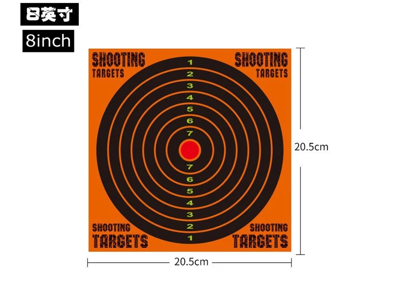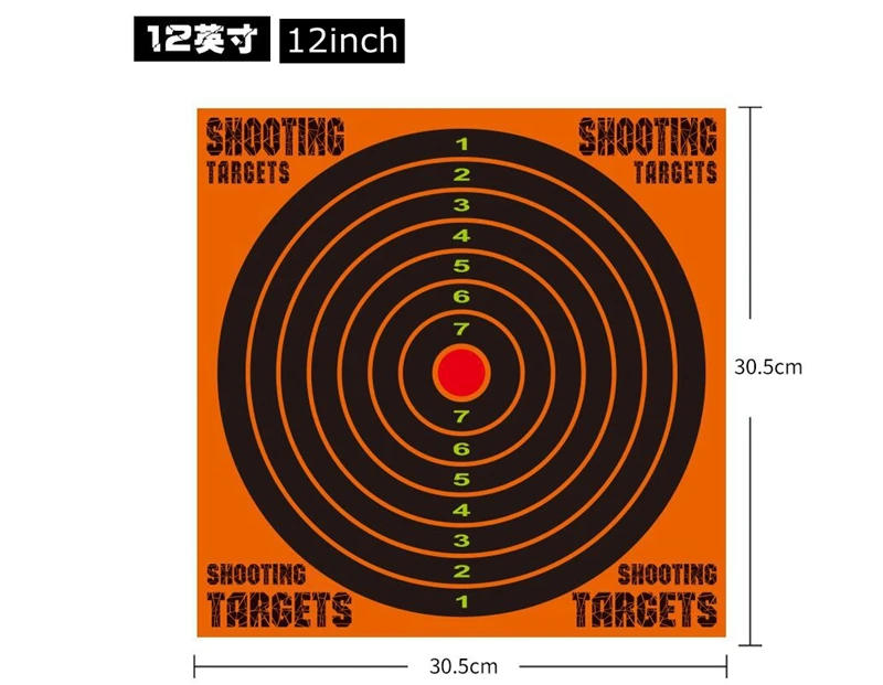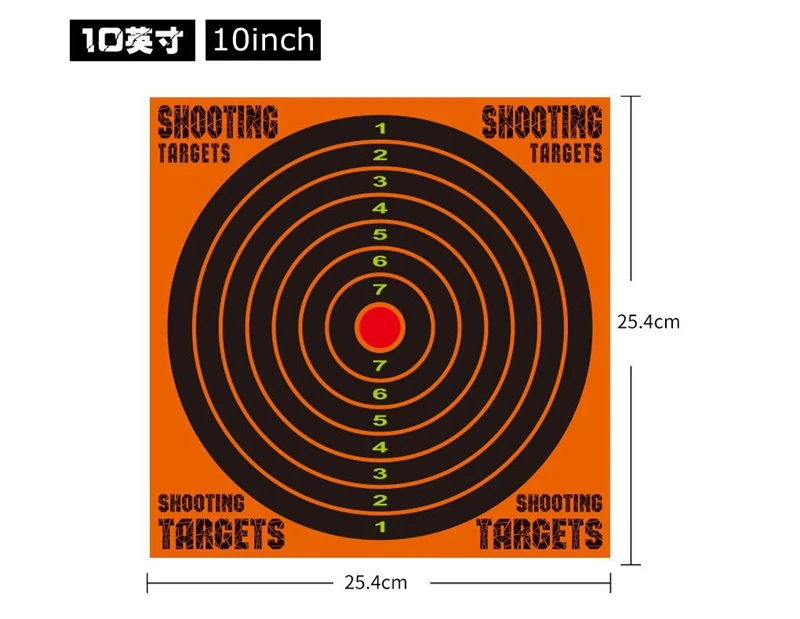 Objetivo reutilizable de tiro contra salpicaduras, accesorio autoadhesivo amarillo fluorescente, para rangos de tiro interior y exterior, 6/8/10/12 pulgadas