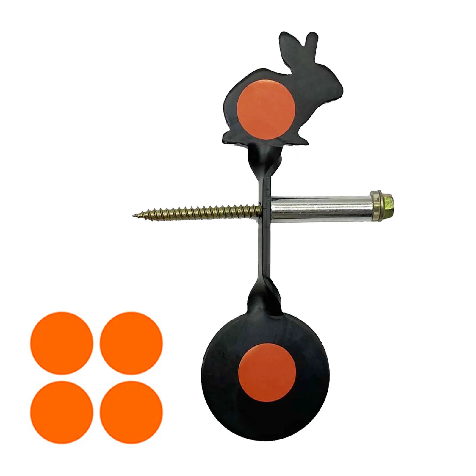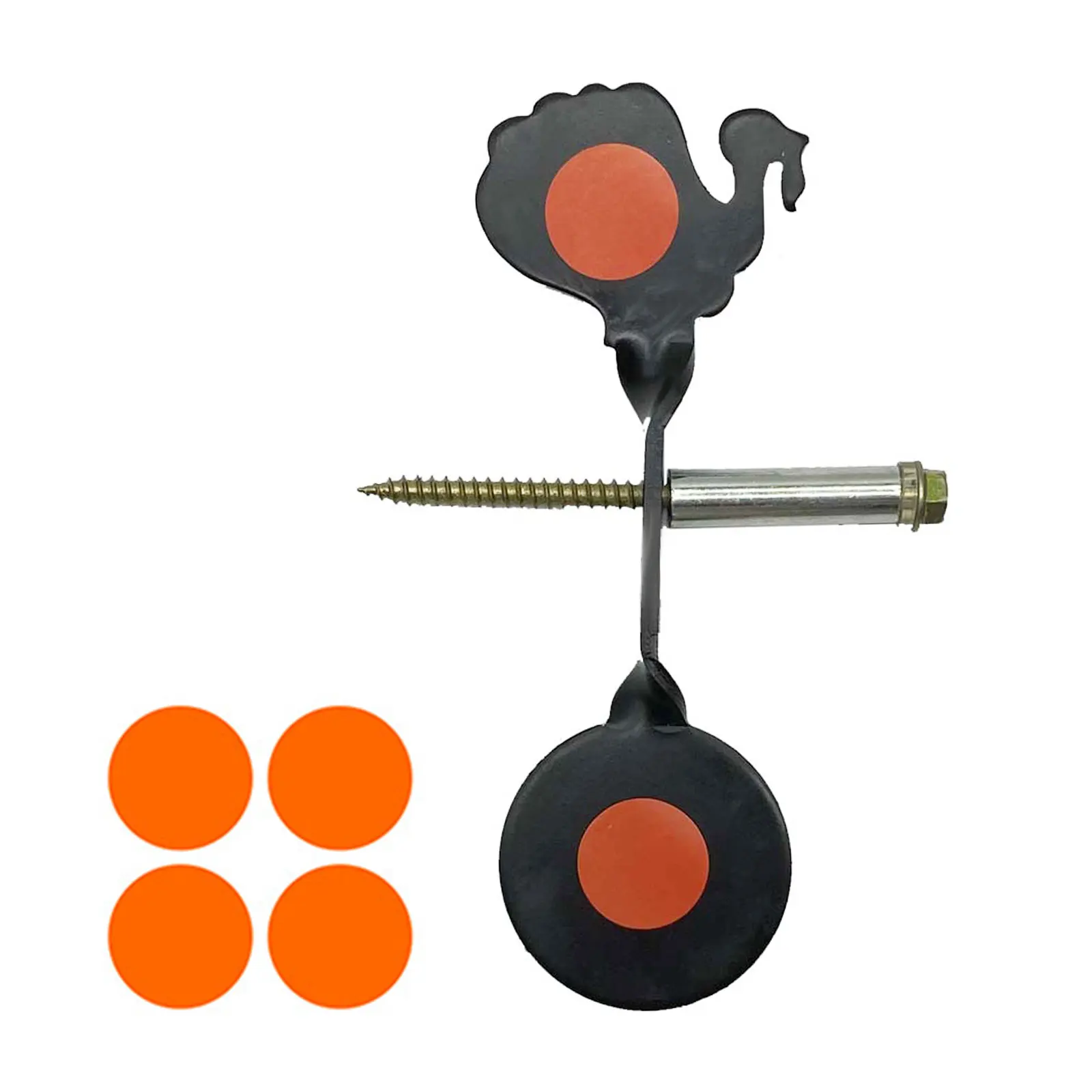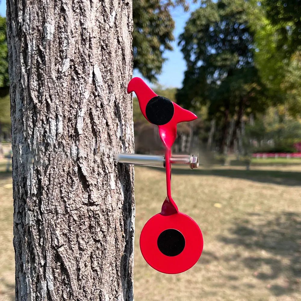 Inserte la pieza objetivo giratoria, la funda redonda y el anillo de hierro en el tornillo hexagonal largo, luego inserte todo el juego en un objeto de pie: como un tronco de árbol, una barra larga de madera, un bambú, etc.Práctica de tiro para disparar la rotación de la pieza objetivo.La pieza objetivo permanece en posición vertical de principio a fin, sin necesidad de restablecerlo manualmente.