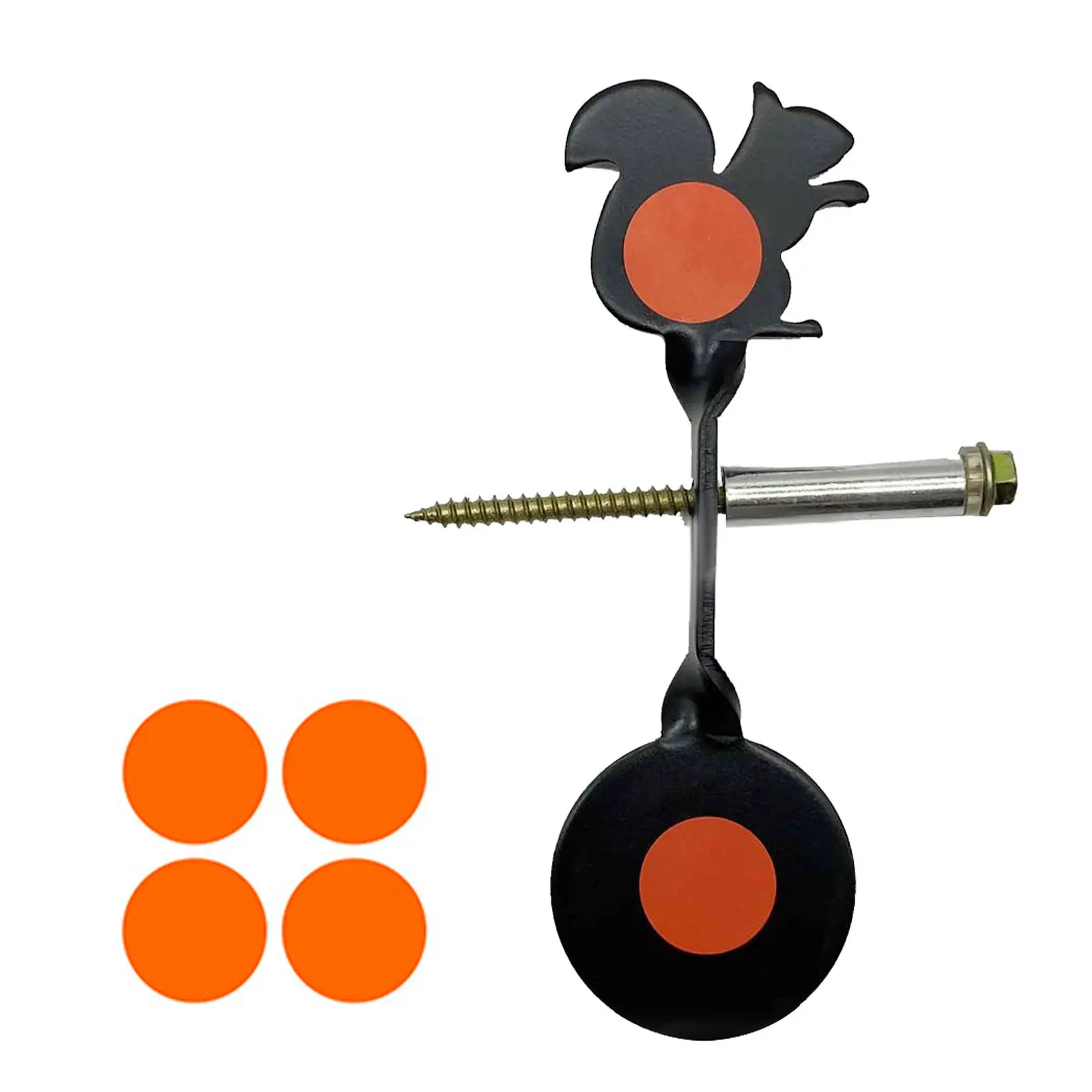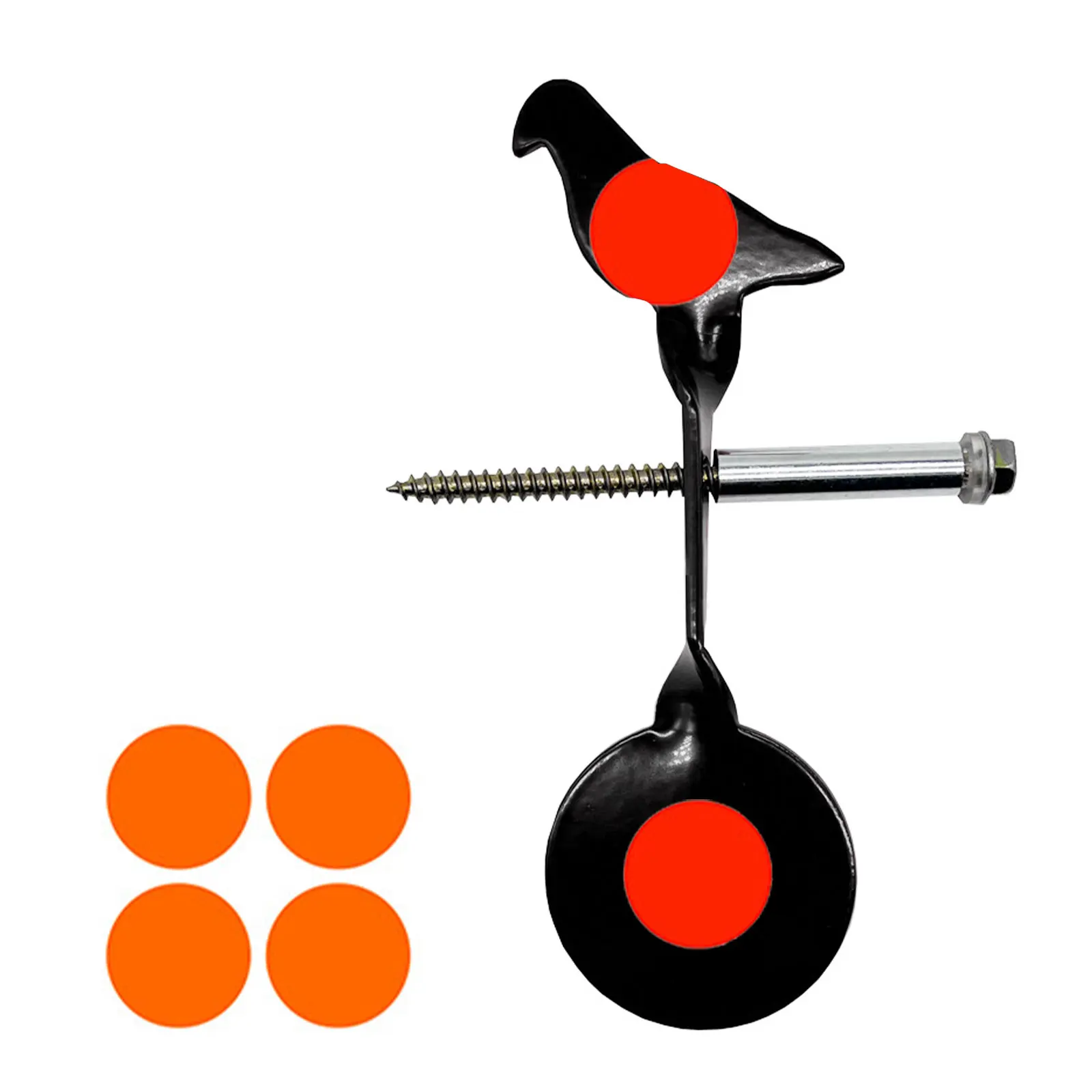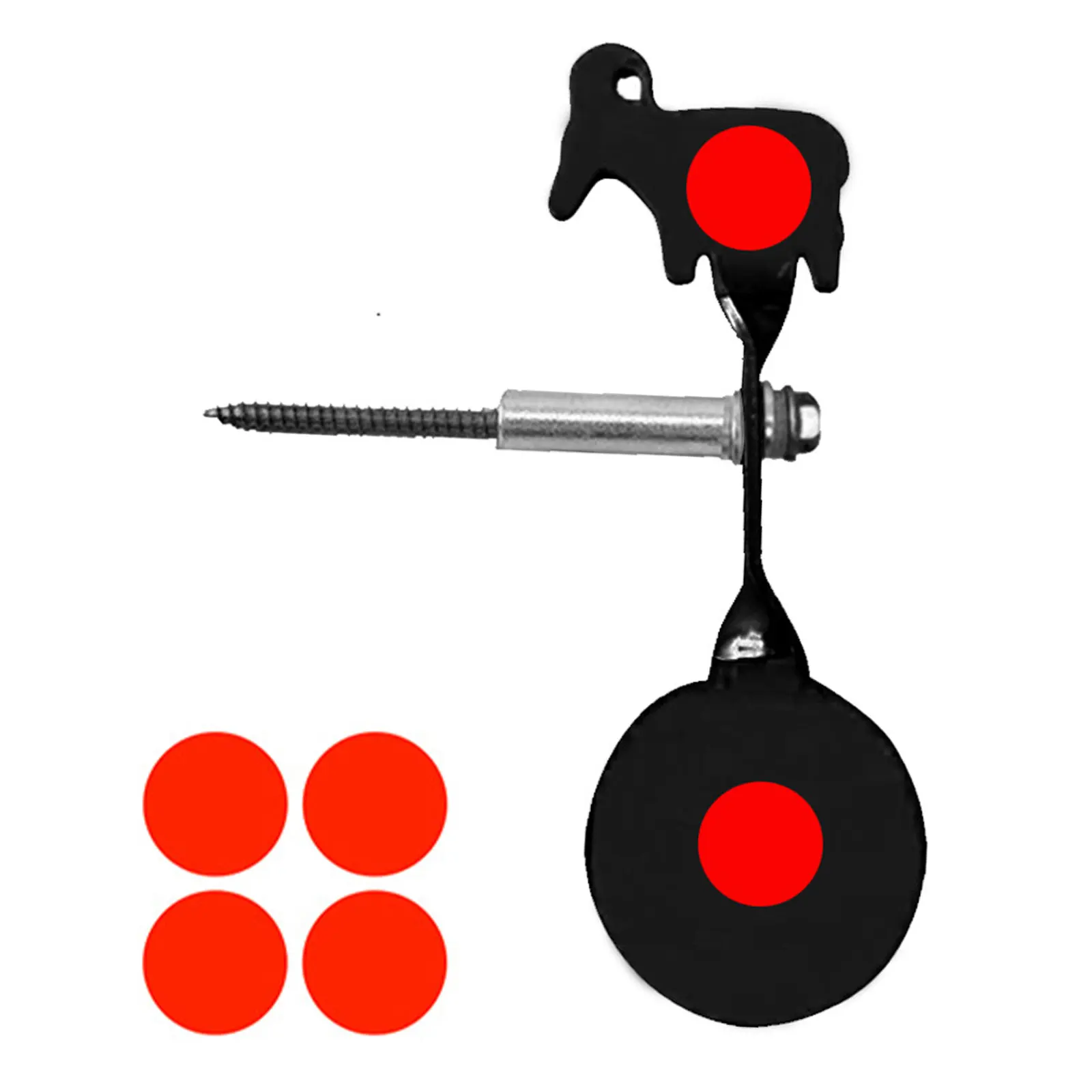 Inserte la pieza objetivo giratoria, la funda redonda y el anillo de hierro en el tornillo hexagonal largo, luego inserte todo el juego en un objeto de pie: como un tronco de árbol, una barra larga de madera, un bambú, etc.Práctica de tiro para disparar la rotación de la pieza objetivo.La pieza objetivo permanece en posición vertical de principio a fin, sin necesidad de restablecerlo manualmente.