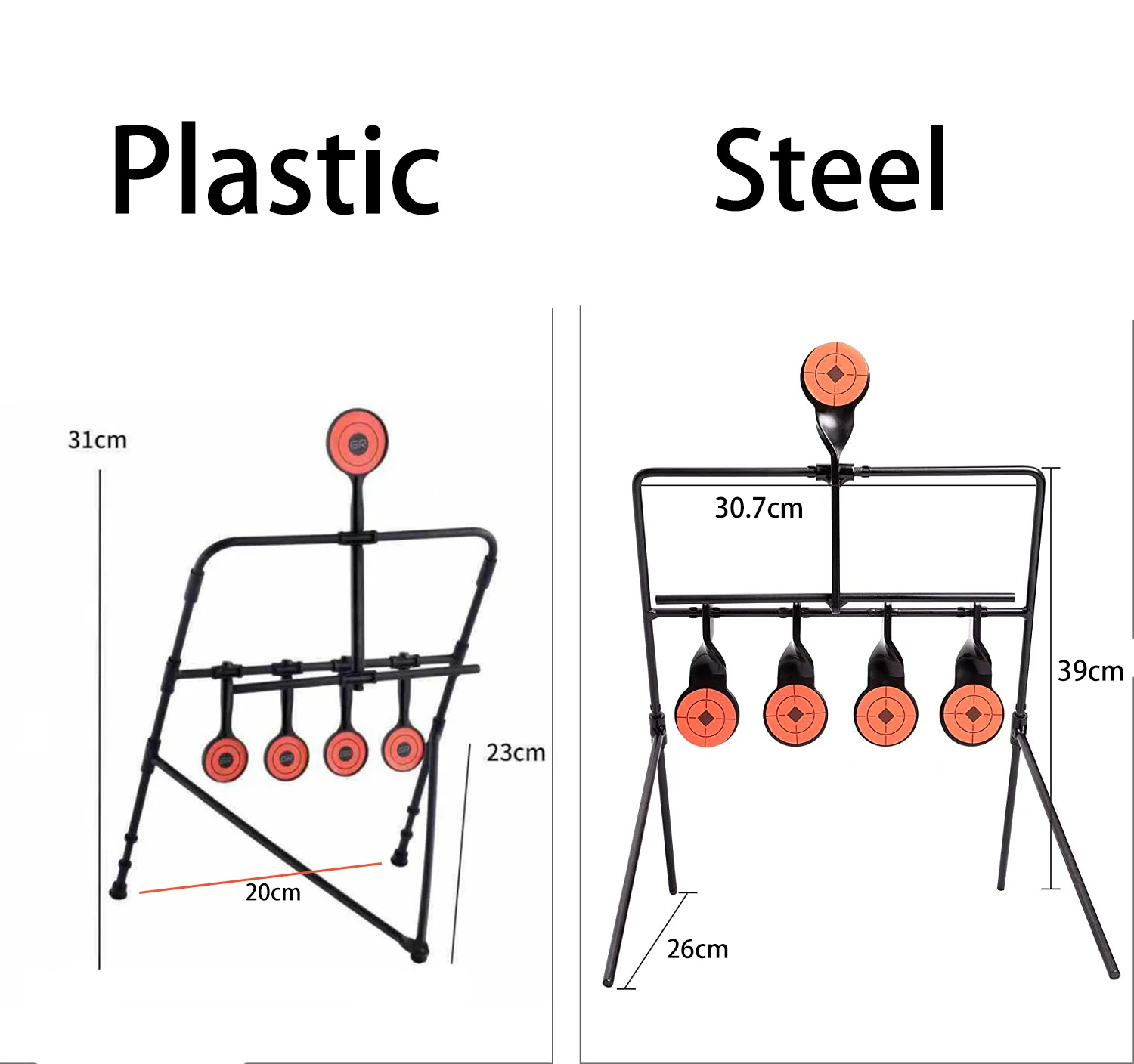 Nota: el objetivo de plástico es para niños, no lo dispare con un arma demasiado fuerte.Se romperá, adultos si desean comprar un objetivo duradero, solicite el tipo de acero.