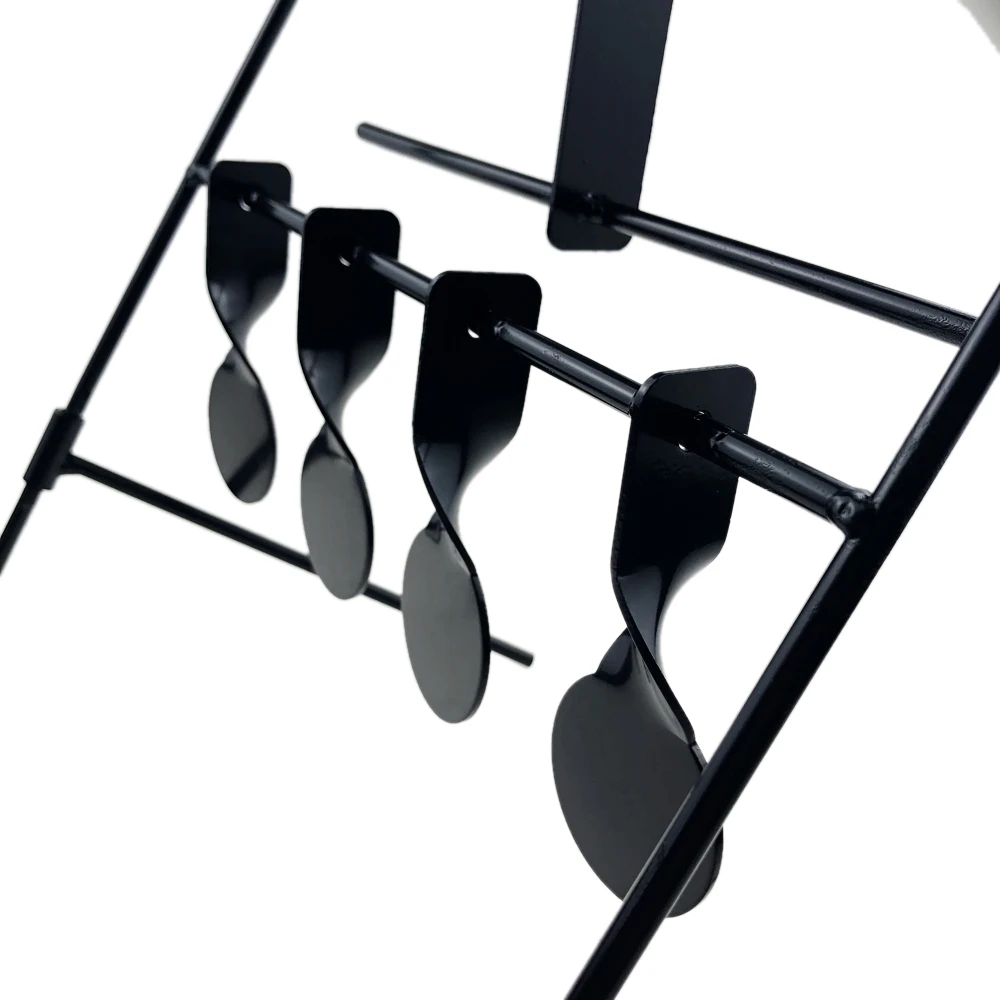 1.Cuatro platos están caídos.Se levantarían y viajarían en la barra horizontal cuando los golpees.