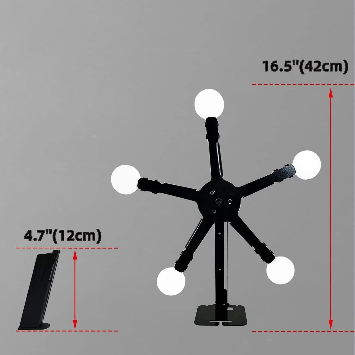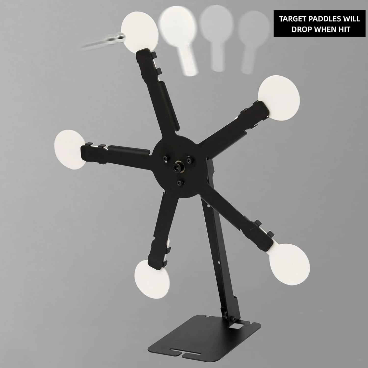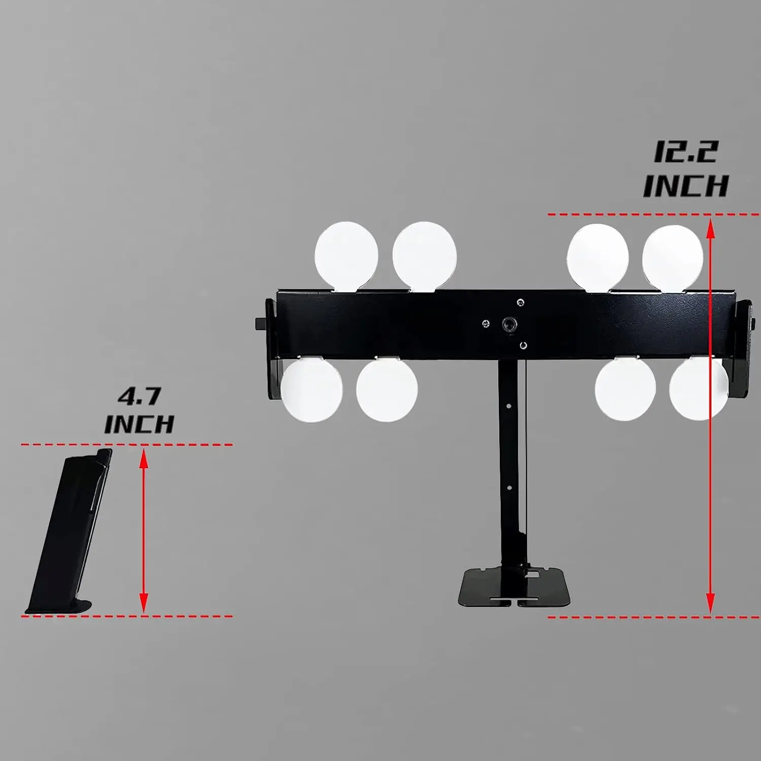 (1) Diseñado para atraer magnéticamente 5 objetivos circulares blancos.Siempre que golpee un objetivo, el objetivo se caerá y girará automáticamente, lo cual es un objetivo de disparo dinámico. Debe restablecerlo manualmente antes de poder disparar nuevamente.