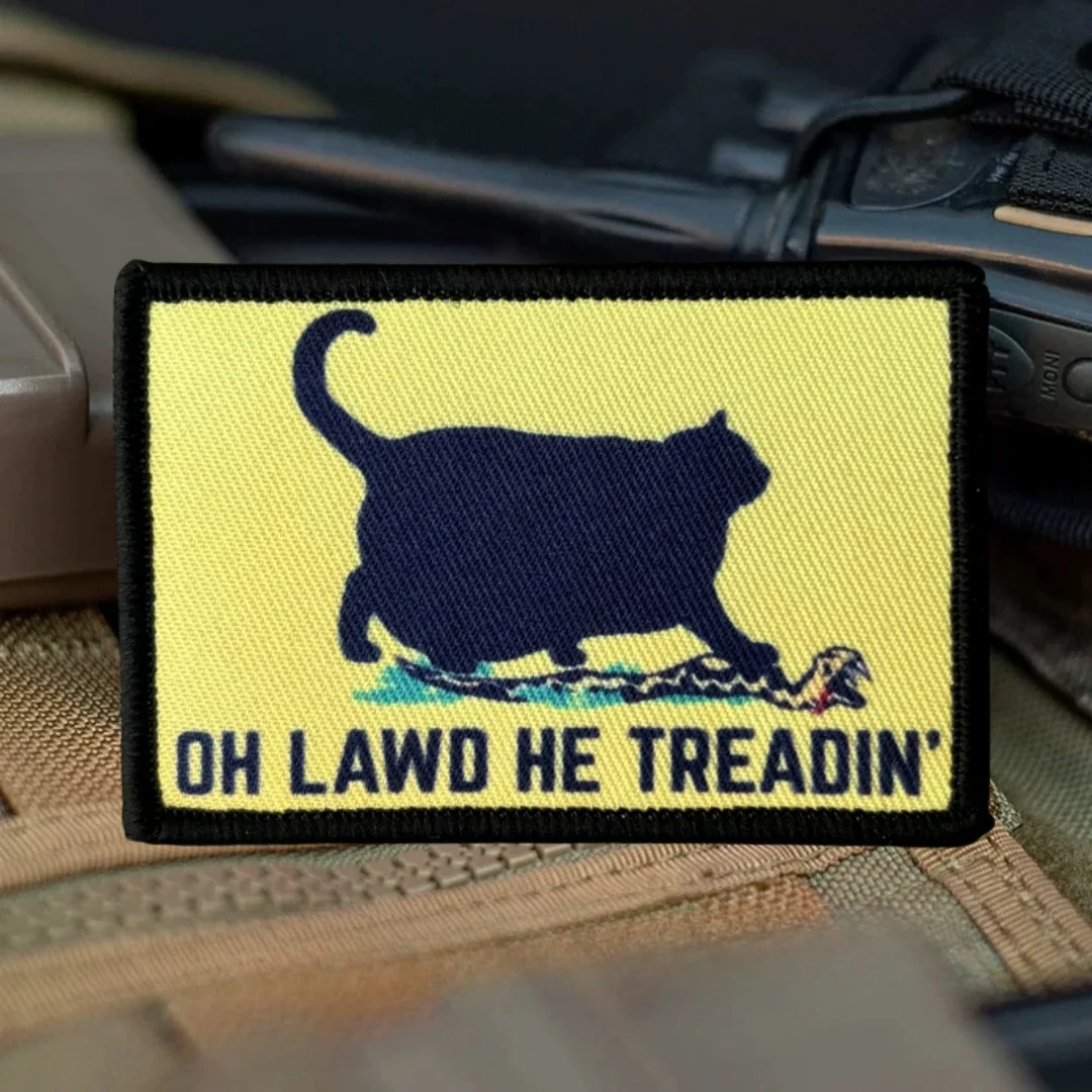 Oh Lawd He Treadin' Morale parche táctico gato impreso gancho y bucle pegatina divertida 2A Gear