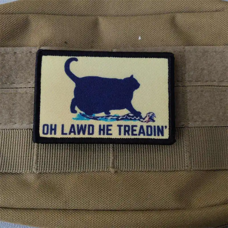 Oh Lawd He Treadin Parche de impresión Cat Hook & Loop Insignia de moral táctica Mochila Ropa Parches adhesivos decorativos para ropa
