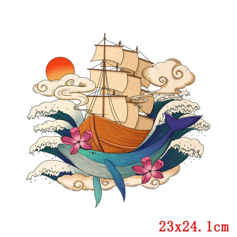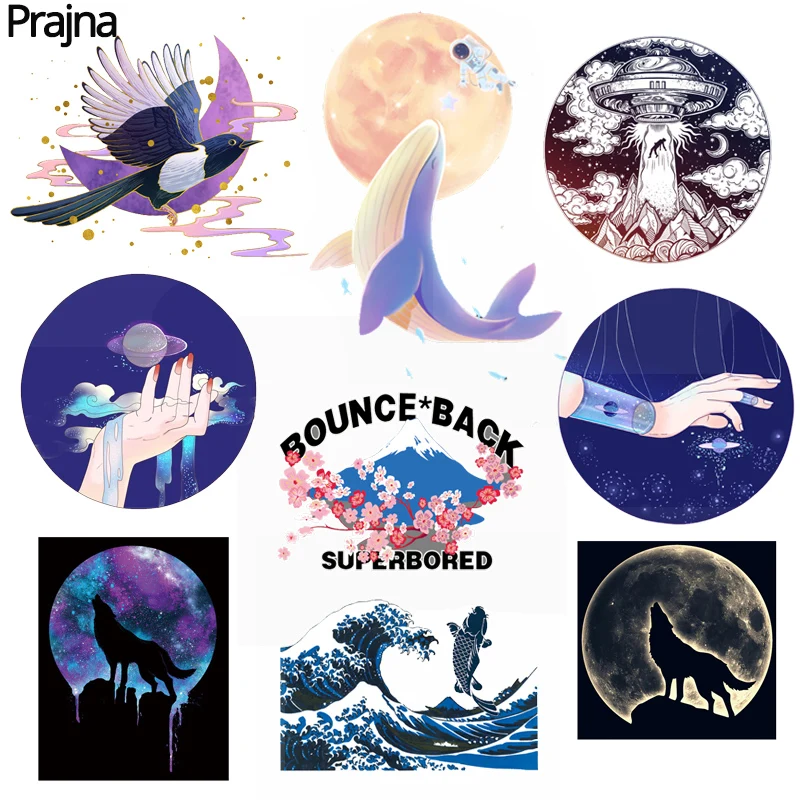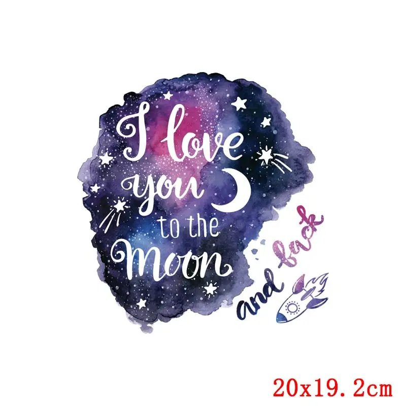 Ondas espacio transferencia de calor pintura de paisaje hierro en transferencia DIY planchado pegatinas térmicas parches para ropa camiseta apliques