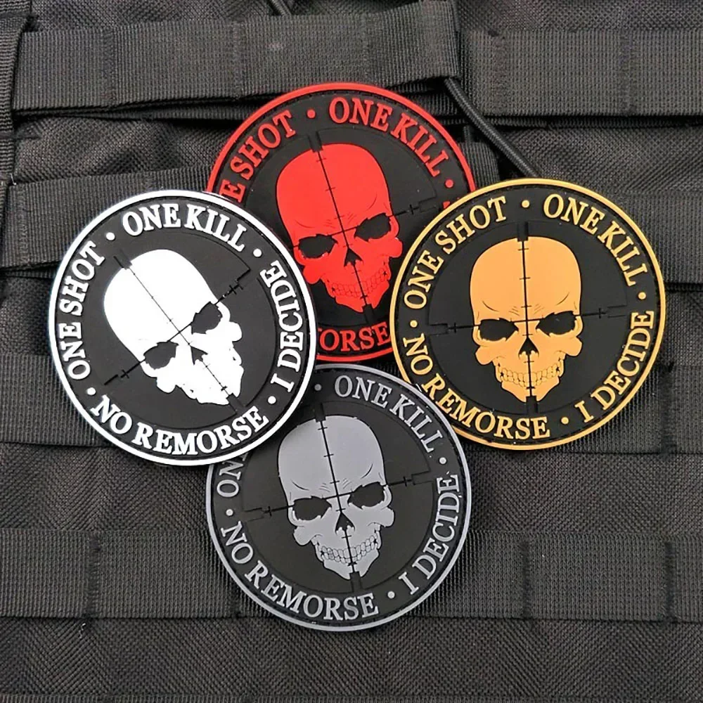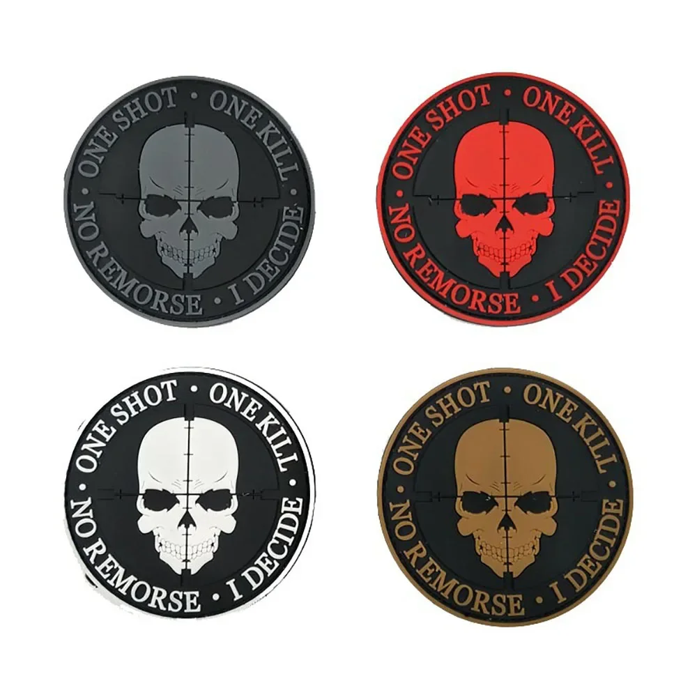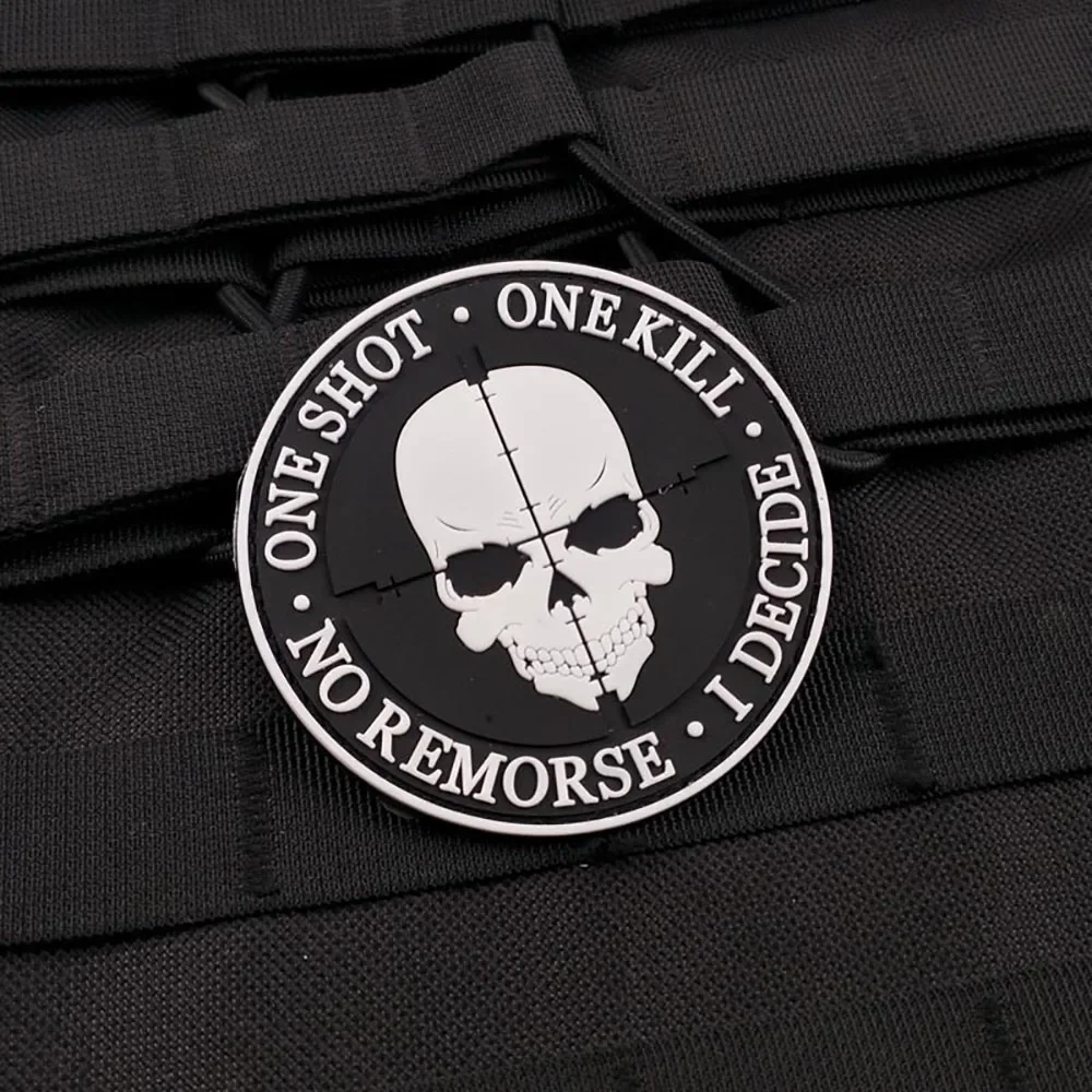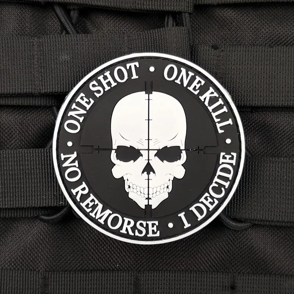 One Shot One Kill cráneo 3D PVC gancho y bucle parche táctico francotirador militar parches en ropa insignias de calavera