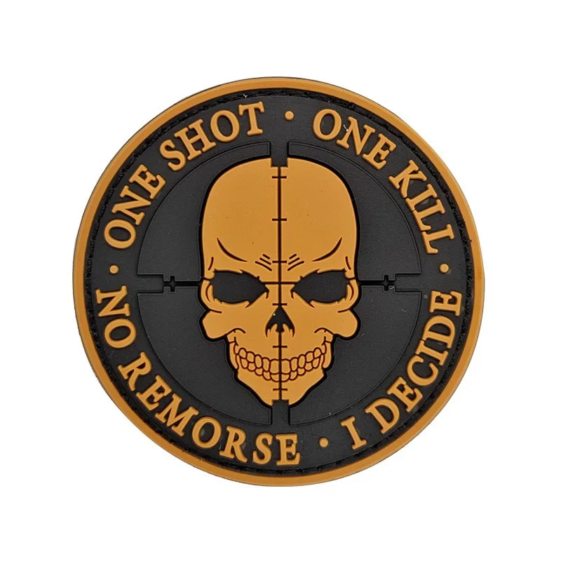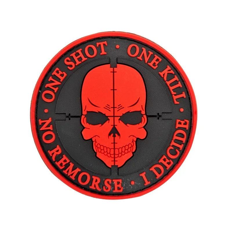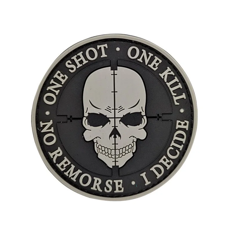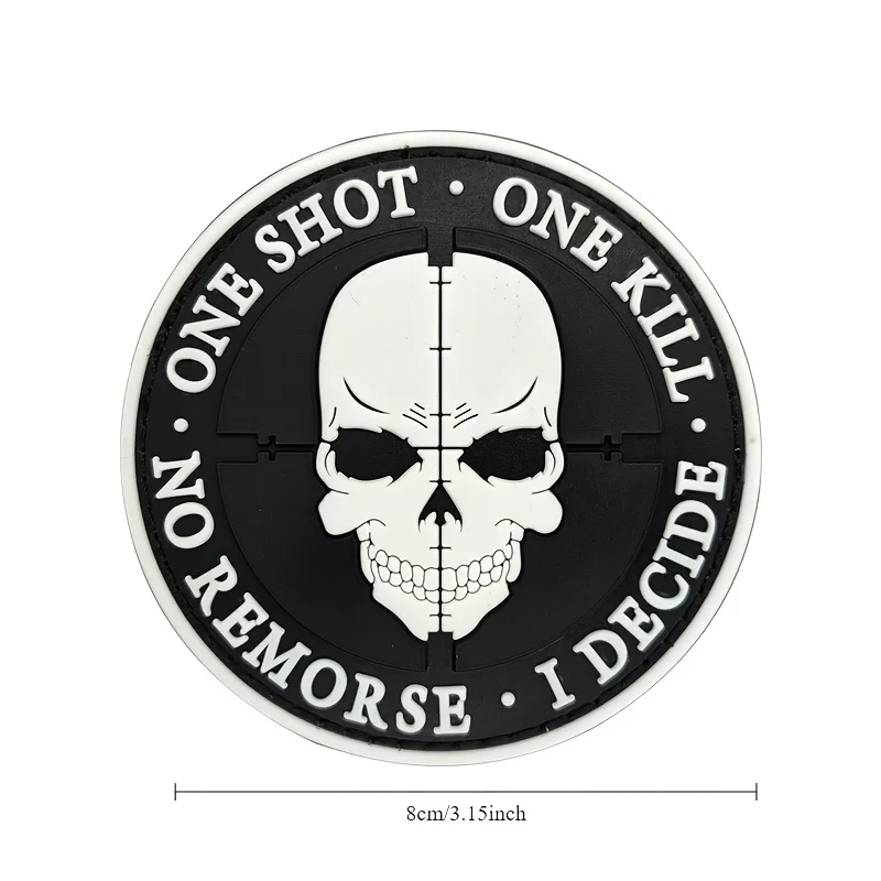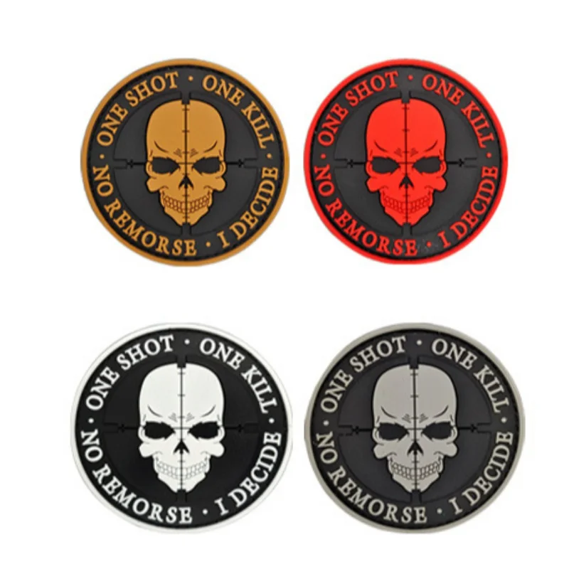 One Shot One Kill Skull-parche de goma 3D de PVC, Velcros, cierre de gancho y bucle militar táctico, insignia de moral para mochila Molle