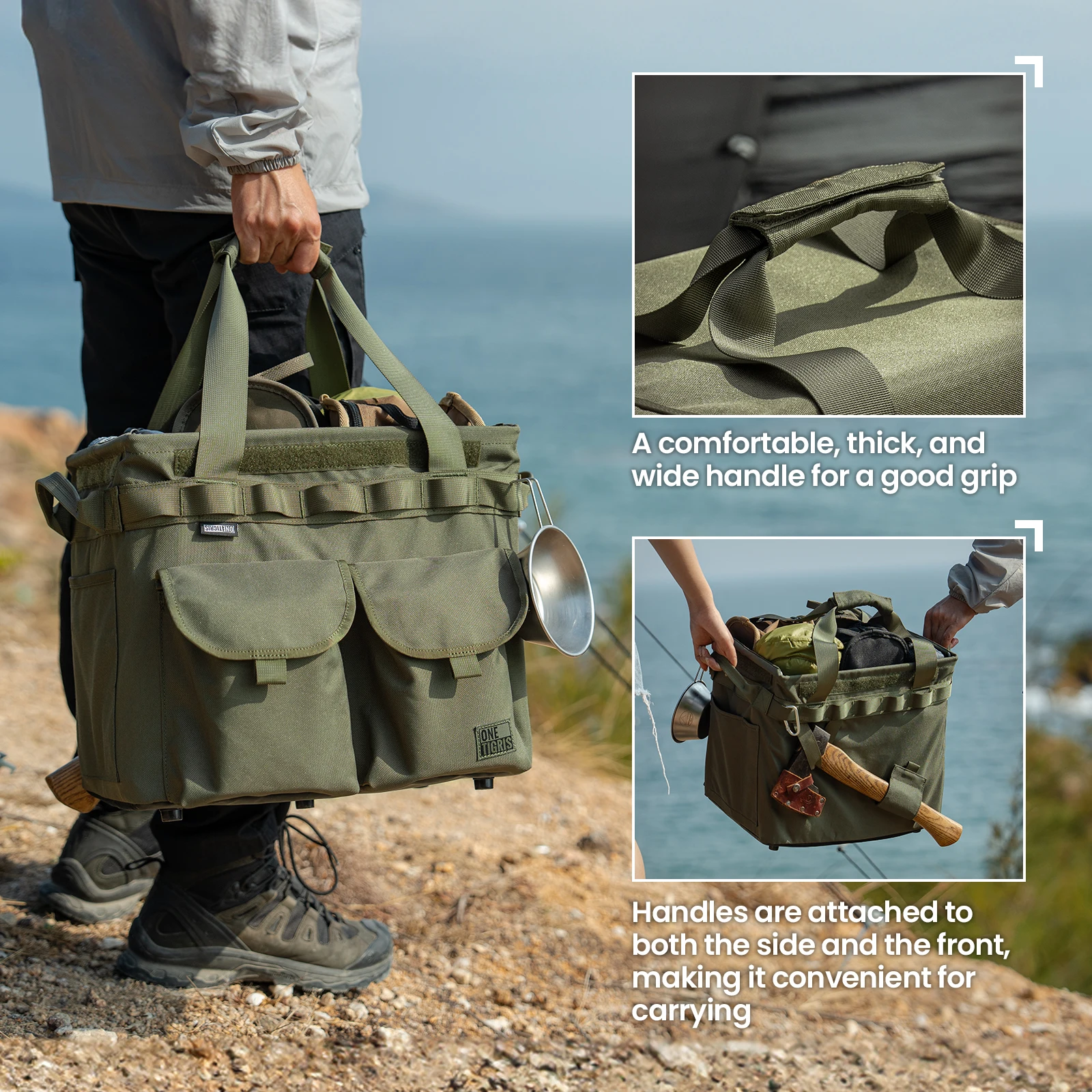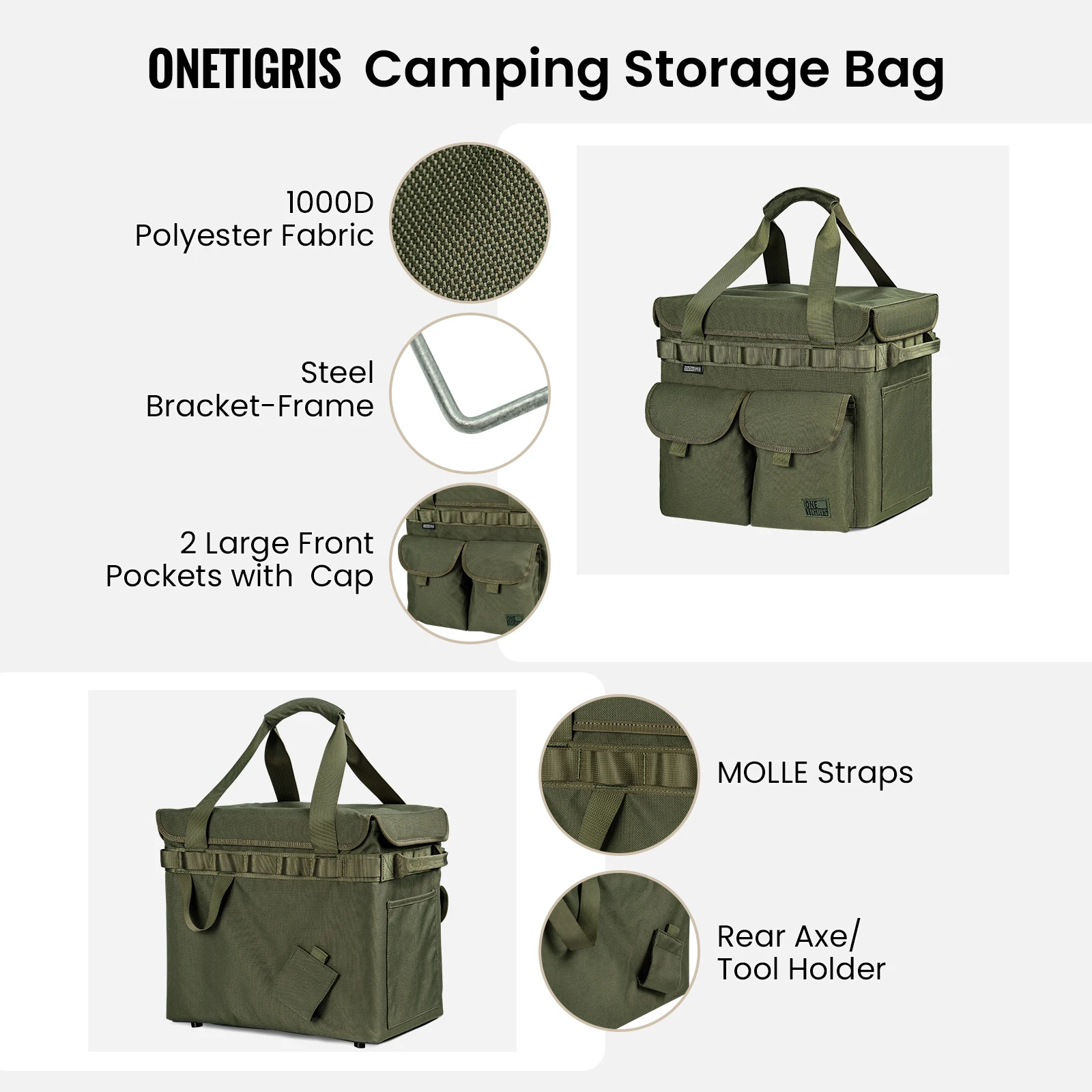 OneTigris, bolsa de transporte de equipo de camping plegable portátil para exteriores tácticos con molle embellecedor y bolsillos organizadores y correa de hacha