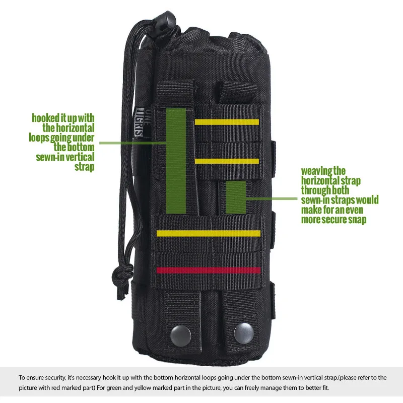 OneTigris Malla inferior MOLLE Botella de agua Bolsa Cordón 1000D Portador de hidratación táctico