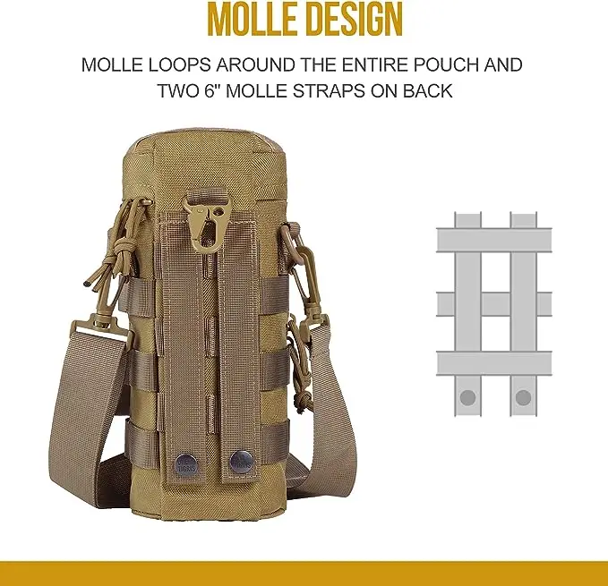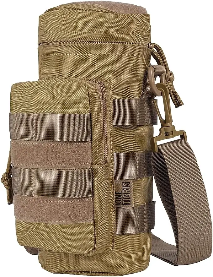 Mantenerse hidratado es muy importante durante cualquier actividad.OneTigrisLa bolsa SNIPER puede contener una botella de agua de 0,5-1L. Accesorios Molle en el lateral para sujetar cualquier otra cosa que desee. Y la bolsa con cremallera frontal es conveniente para el almacenamiento. Suficiente espacio para poner cosas y también puede ponerlo en su mochila.