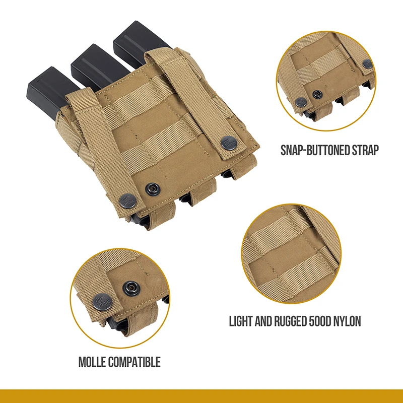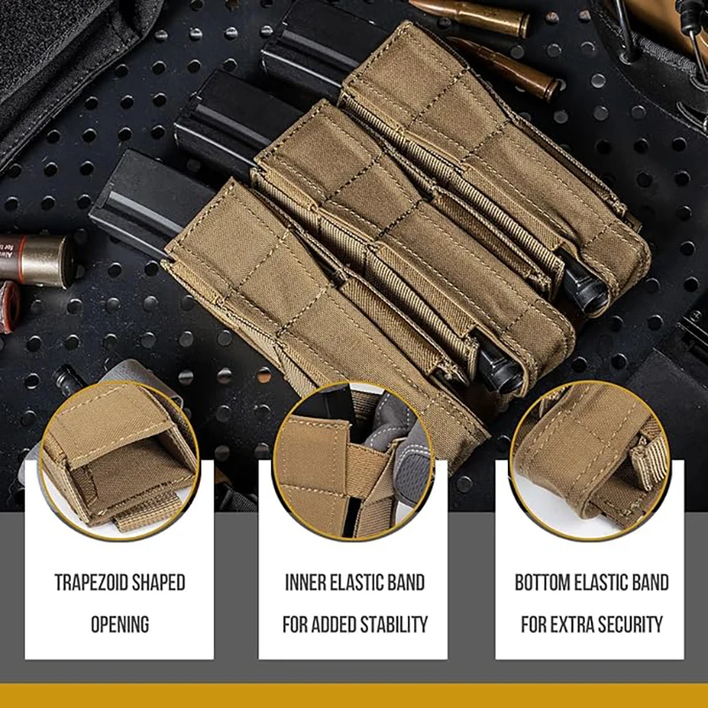 2. La bolsa triple MAG con diseño de doble capa puede contener 6 revistas de forma segura, es adecuada para la mayoría de los tipos de revistas de rifle