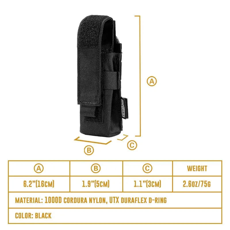 【HEAVY DUTY CONSTRUCT】OneTigris Flashlight Holder is made from 1000D Cordura Nylon for extra durability and water/dirt/abrasion resistance; Felt lined interior for good protection and scratch prevention.