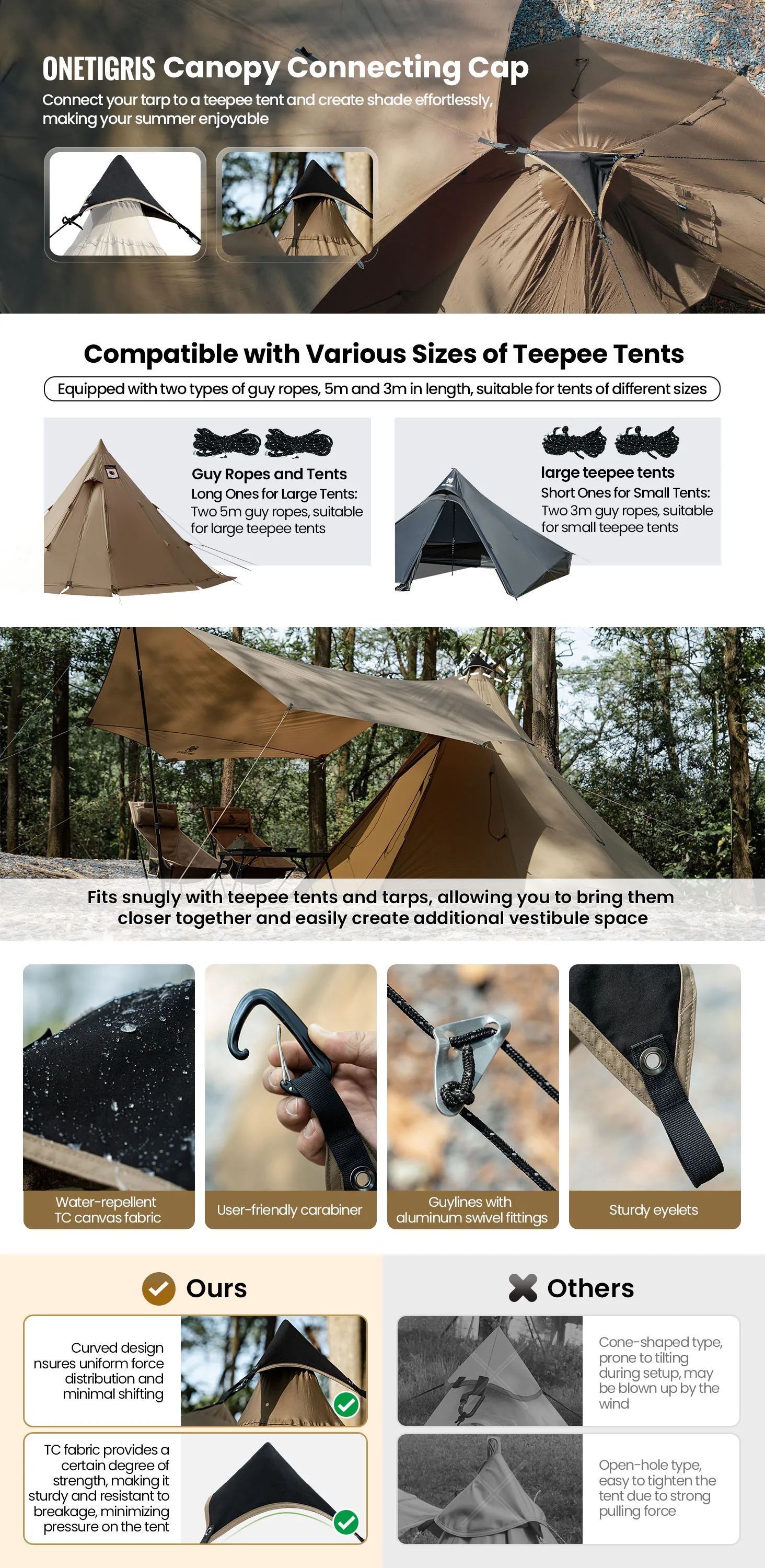 OneTigris-dosel con tapa de conexión para tipi, carpas y lonas