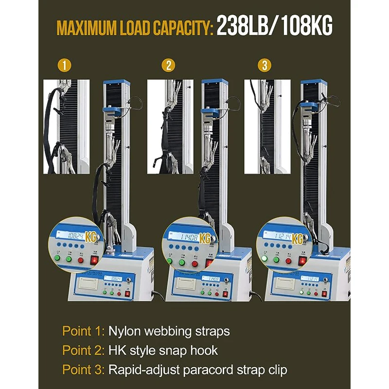 * Construcción sólida: construcción robusta de correas de nailon de 1" con nailon 500D envuelto, correa para el hombro acolchada de EVA que ofrece una excelente resistencia a la suciedad, el agua y la abrasión.