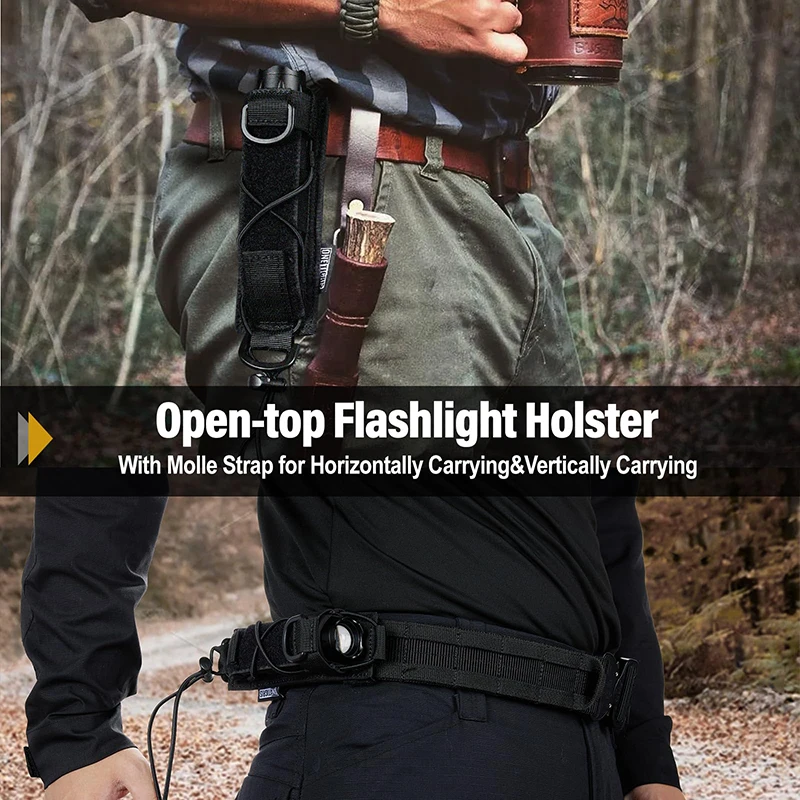 Construcción de alta resistencia: Construcción de nailon 1000D para mayor durabilidad y resistencia a la suciedad/agua/abrasión; funda de cinturón de linterna ligera y conveniente para un fácil acceso