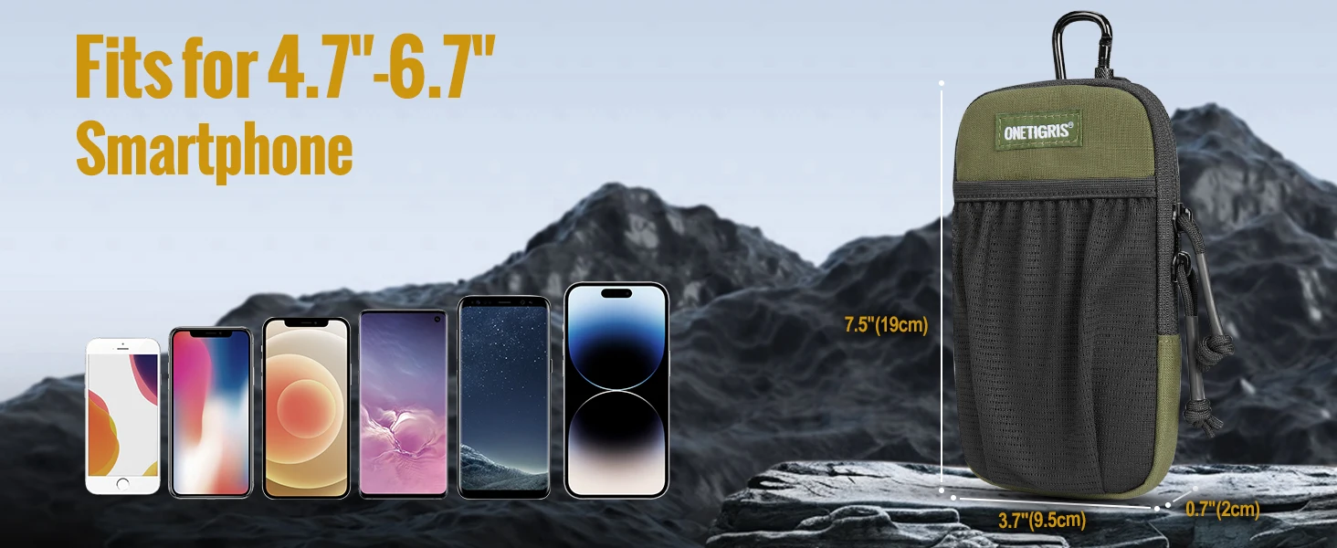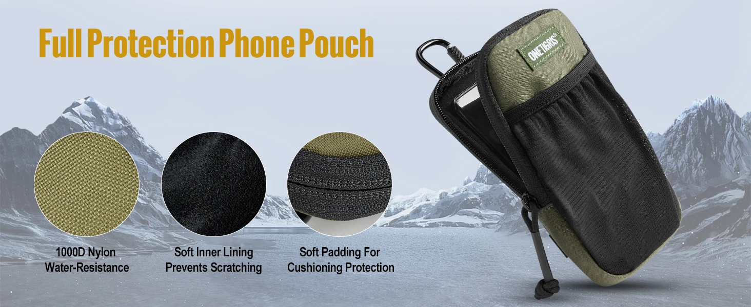 Construcción robusta: la funda para teléfono celular OneTigris está hecha de material de nailon 1000D con mayor durabilidad, resistencia a la suciedad, el agua y la abrasión + mosquetones resistentes y cremalleras YKK.