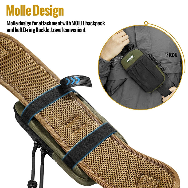 Fácil de transportar: la correa de gancho y bucle y el mosquetón permiten sujetar la bolsa táctica del teléfono al cinturón táctico, la mochila táctica MOLLE o el chaleco táctico, etc.La correa vertical en la parte posterior de la bolsa del teléfono proporciona buena estabilidad y no se sacudirá ni caerá durante el uso.